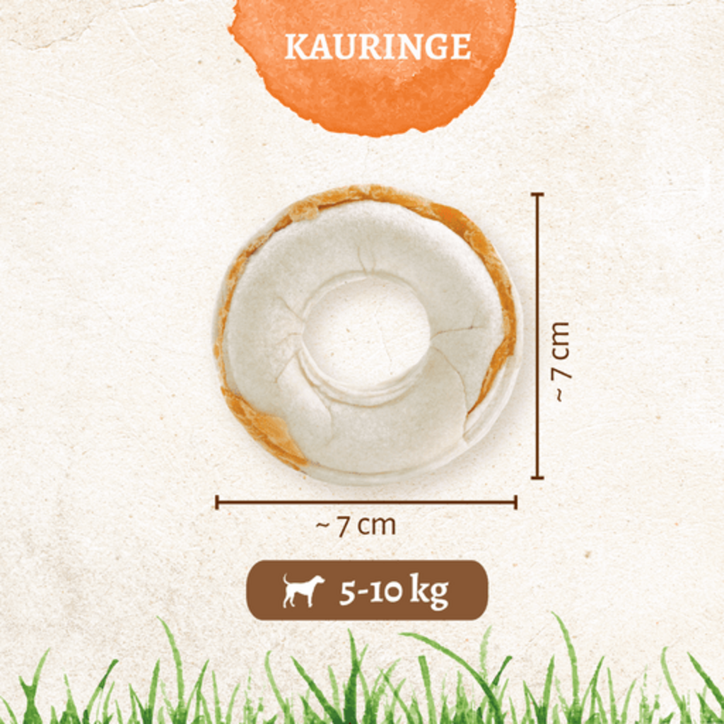 Note: Delights Chewrings are suitable as a reward! Remember, the snack is only a supplement to daily pet food! While your dog is engaged with the snack, you should stay close by. Fast eating can lead to injuries!