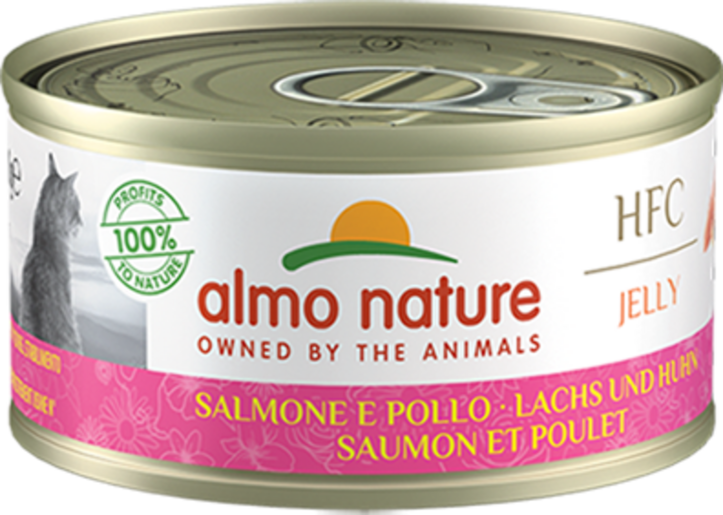 44 % Fish broth, 27,5 % Salmon, 27,5 % Chicken, 1 % Rice