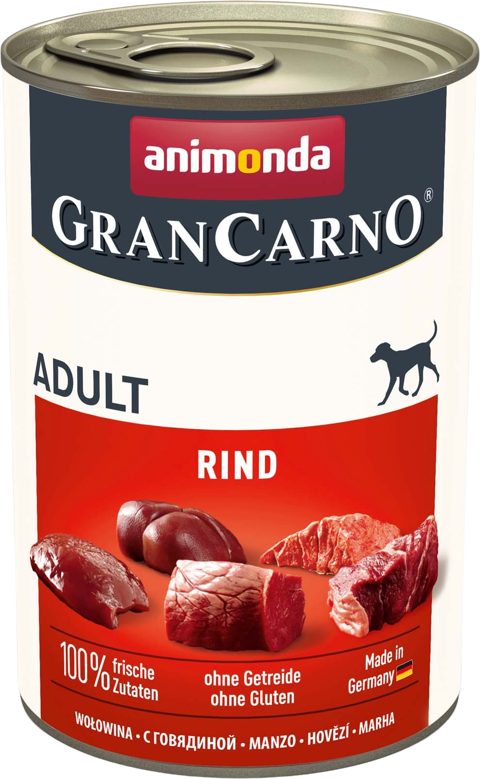 The delicious GranCarno Adult wet pet food is made using only natural raw materials, providing balanced and varied meals for hungry dogs. Its tasty formula, loaded with juicy pieces of beef, eliminates soy, sugar, grains, and artificial colours and preservatives.