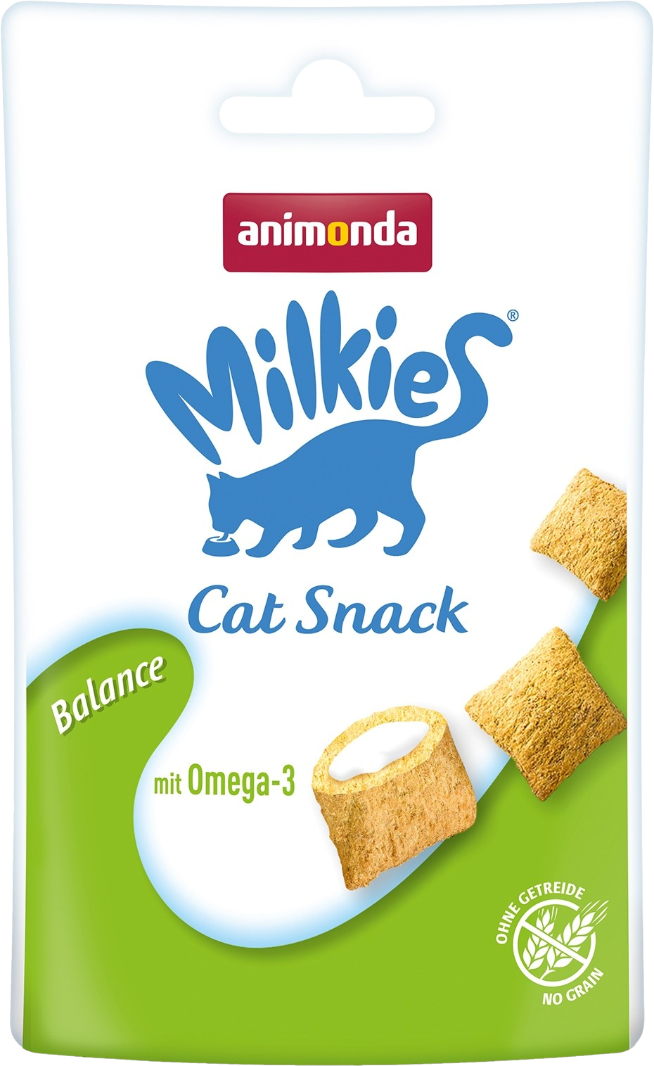 Milkies "Balance" Crunchy Pillows are delicious snacks for in between meals that treat your cat with tasty ingredients from poultry! These crunchy treats are free from grains and soya and are rich in valuable Omega-3 fatty acids.