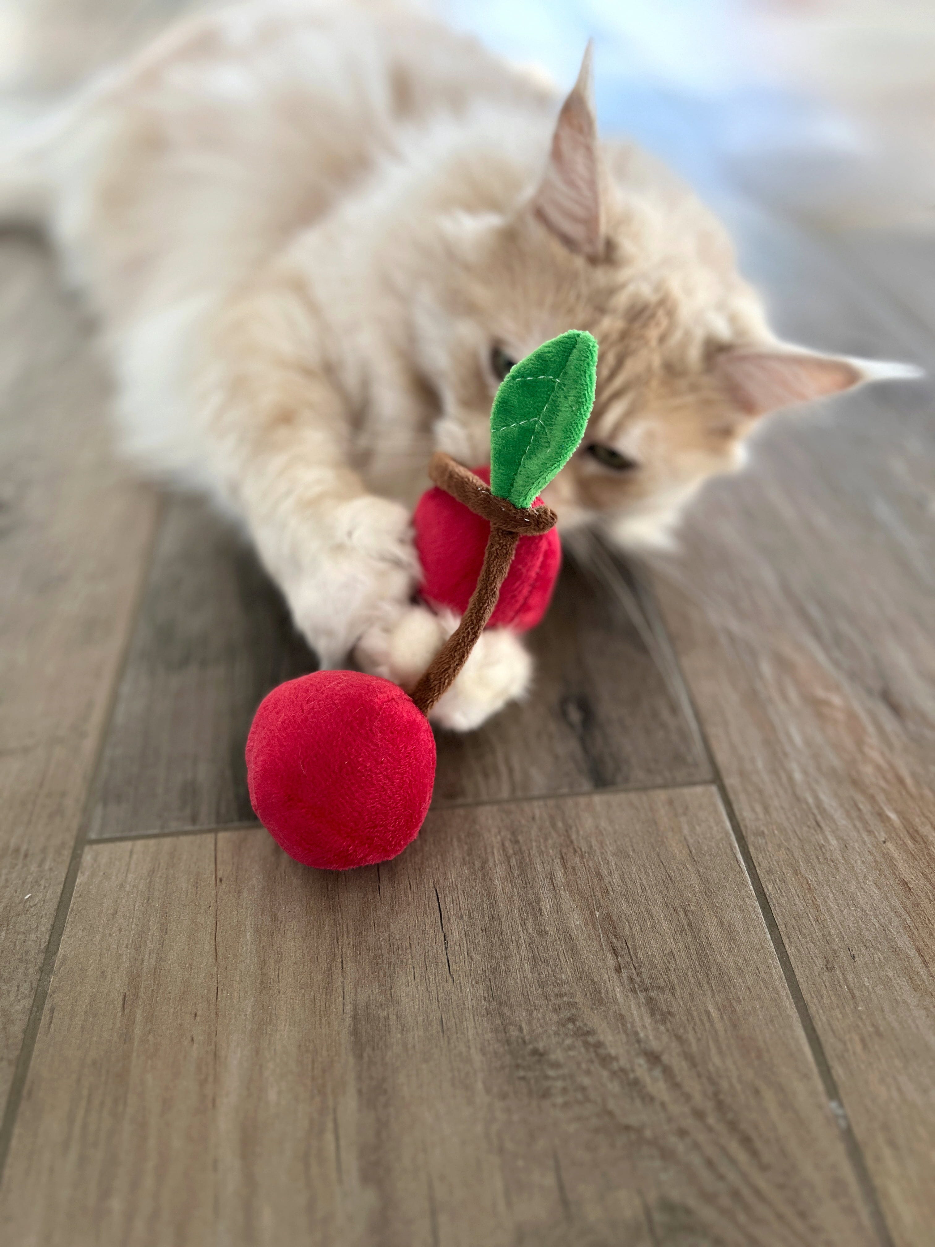 The sweetest cherries... are often found in the cat basket. These cherries impress not only with their cute design but also with their filling: a filling of catnip and silver vine makes them simply irresistible for playful cats.