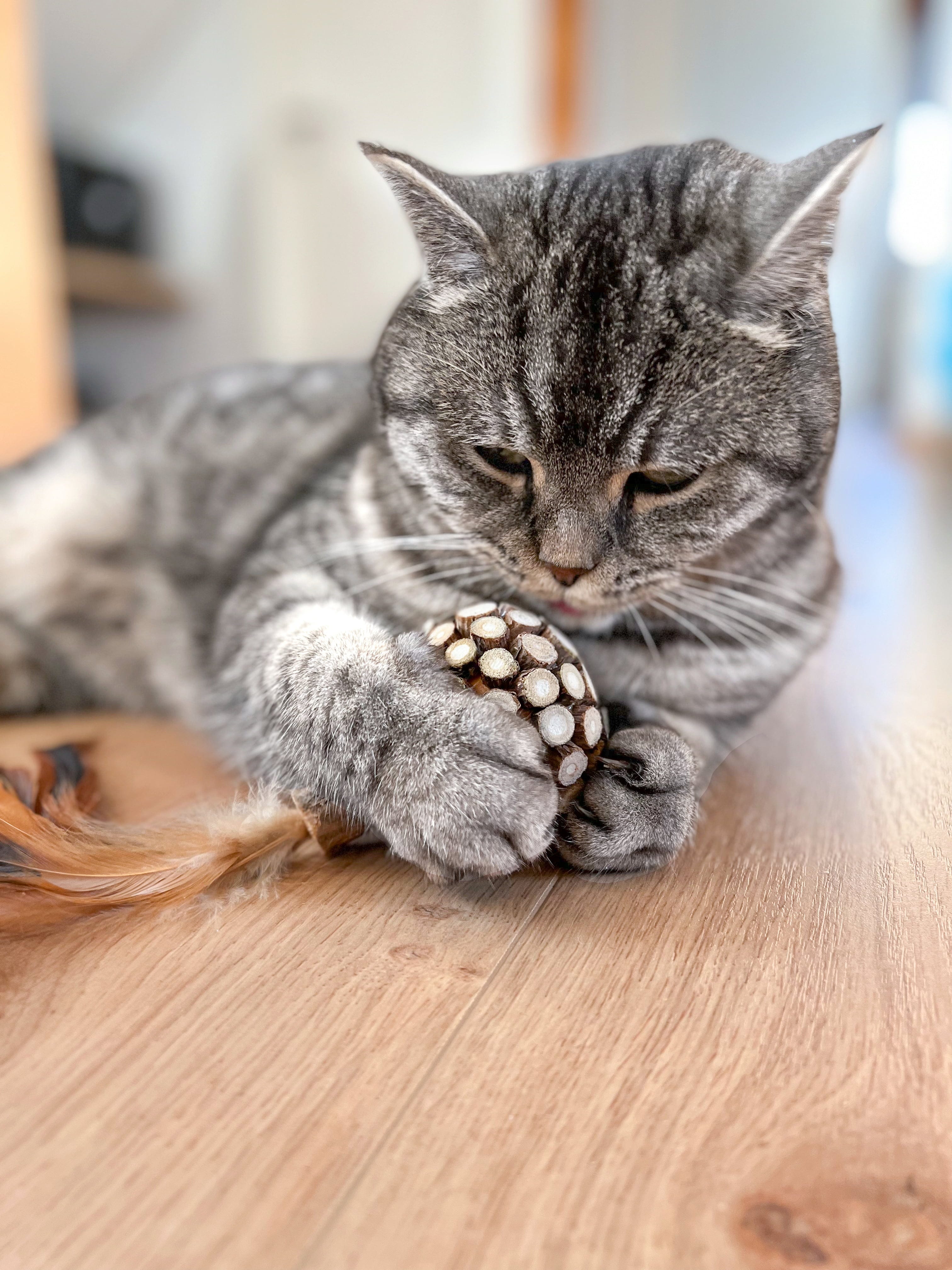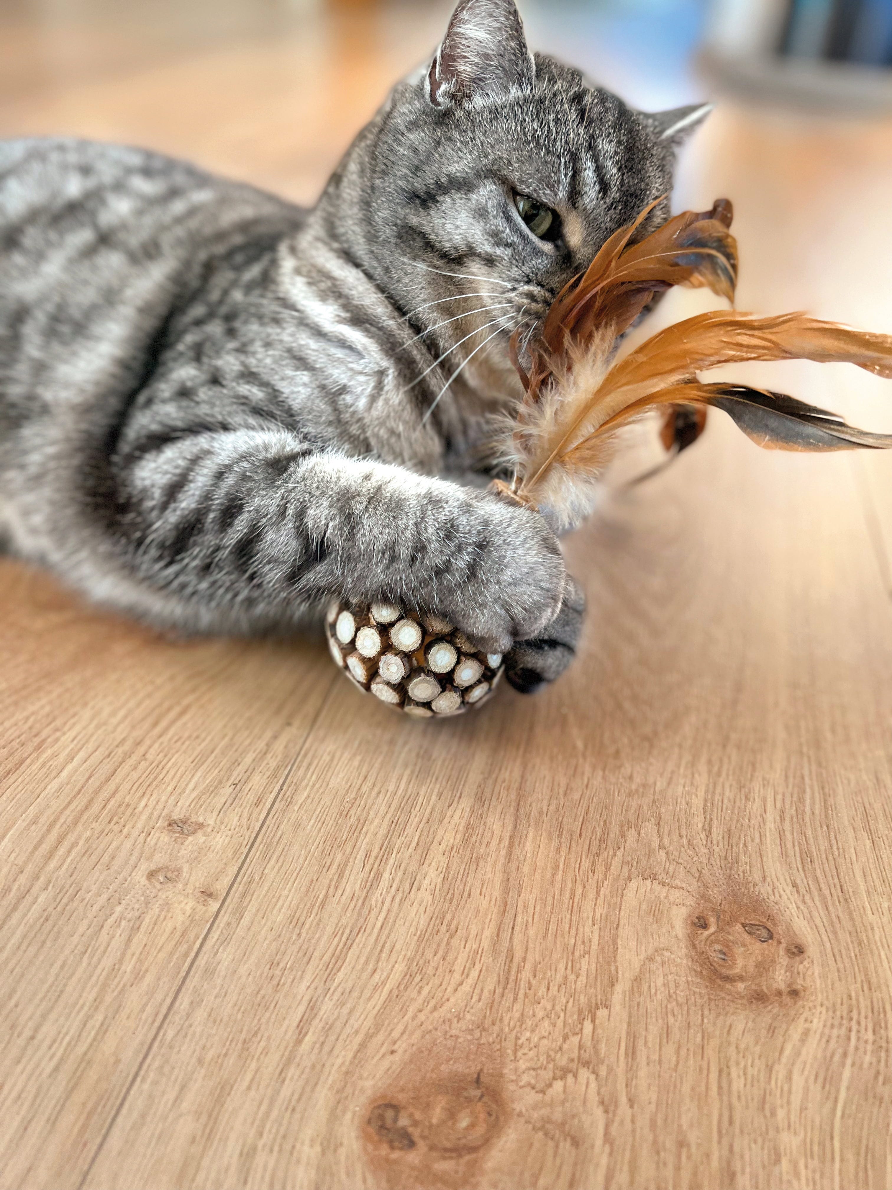 This cat toy not only provides entertaining amusement, but also supports your cat's dental care. Made from 100% natural materials and enhanced with catnip and silver vine - a well-known "cat herb" from Asia - it brings species-appropriate variety to your house cat's daily routine.