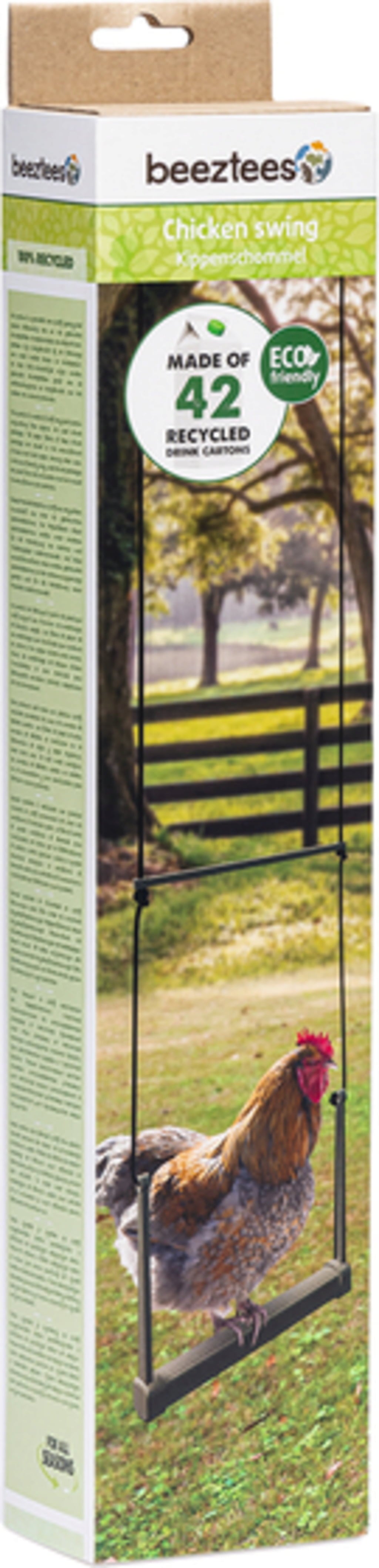 Material: The Beeztees Chicken Swing is not just an entertaining toy for your chickens, but also environmentally friendly. Made from 100% recycled plastic, derived from about 42 drink cartons. The included rope is also made from recycled PET bottles.