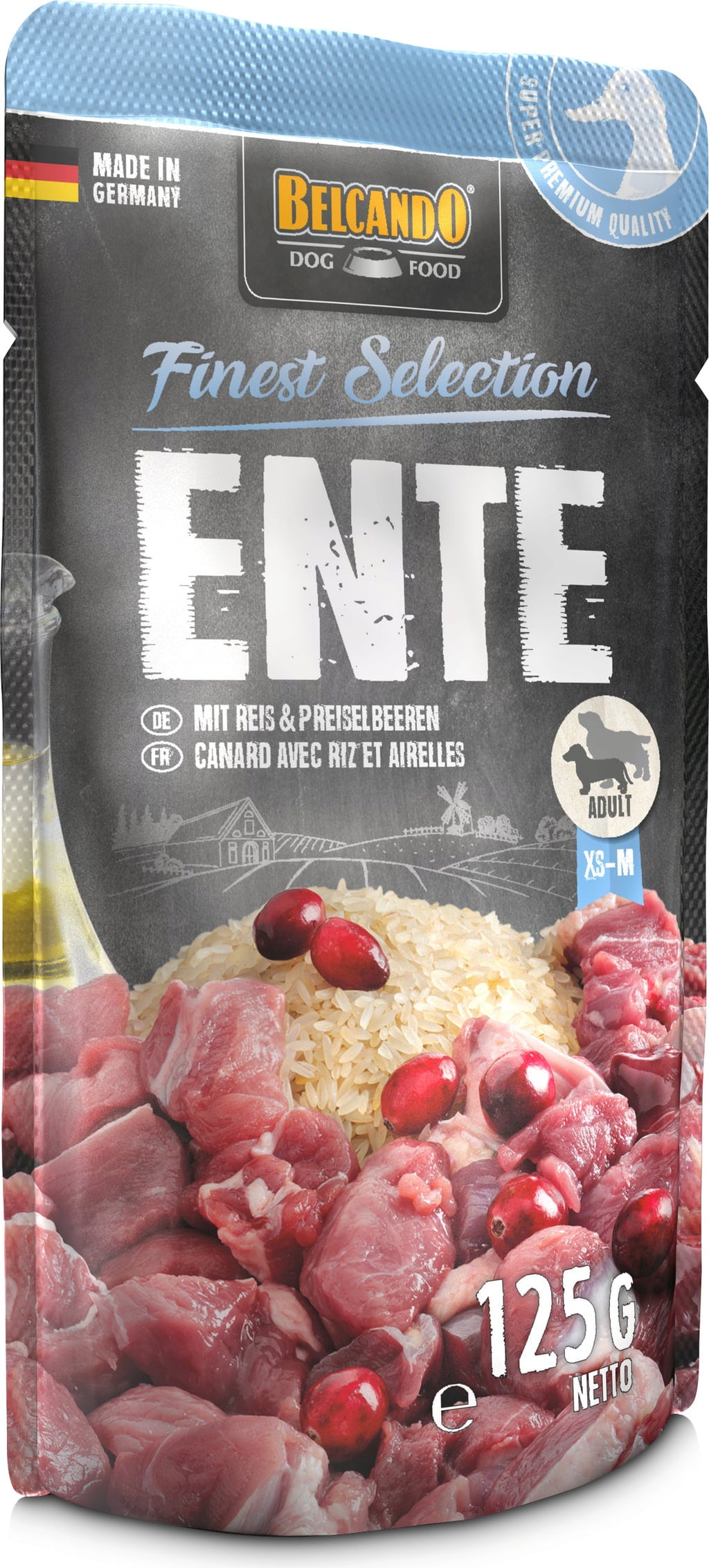 Culinary meals for extra hungry connoisseurs: The portion pouches by Belcando® contain exactly what dogs love! Gently cooked juicy duck pieces meet rice and cranberries. A delightful symphony with every bite! Enriched with plenty of essential unsaturated fatty acids from cold-pressed safflower oil.