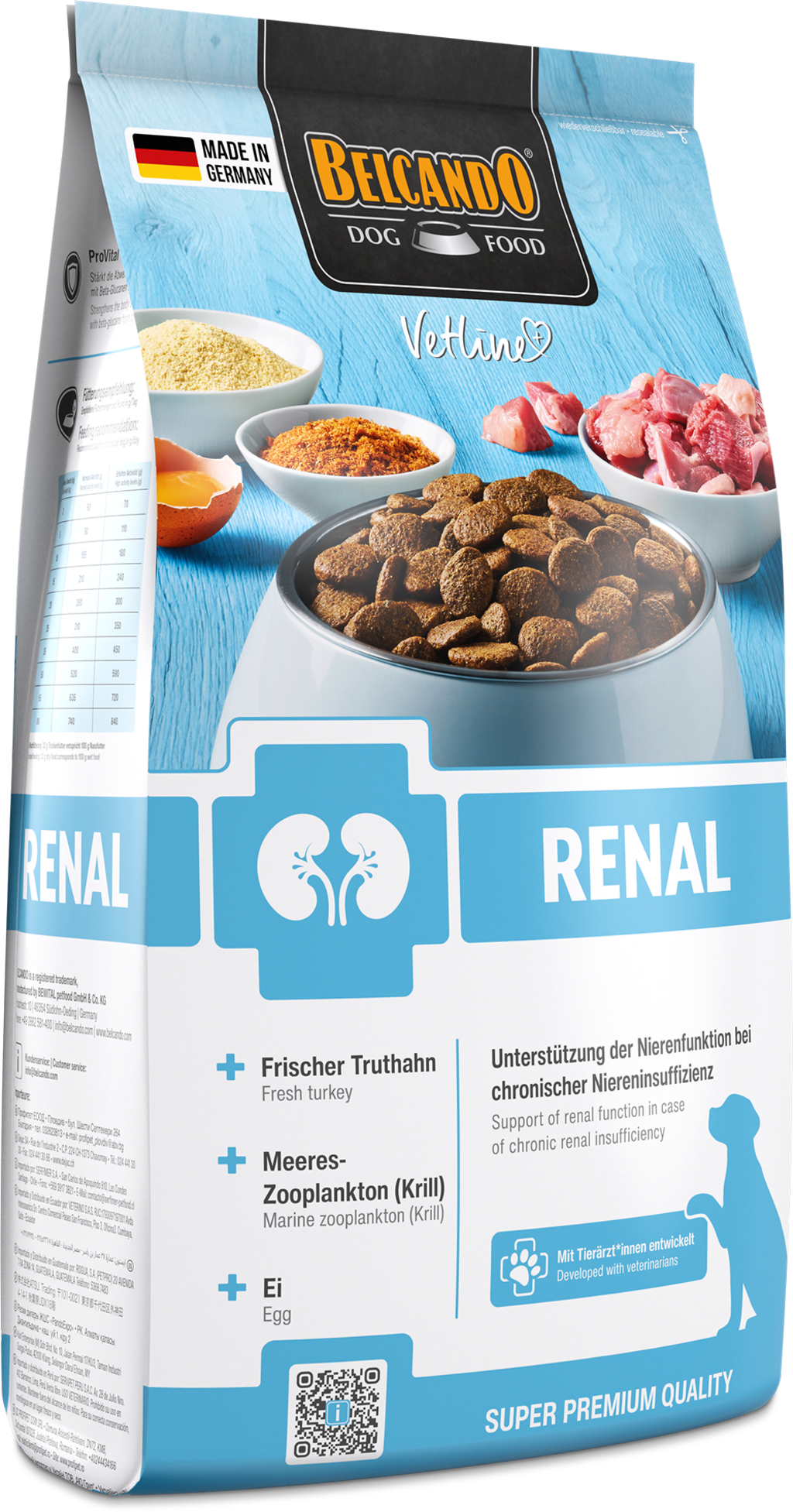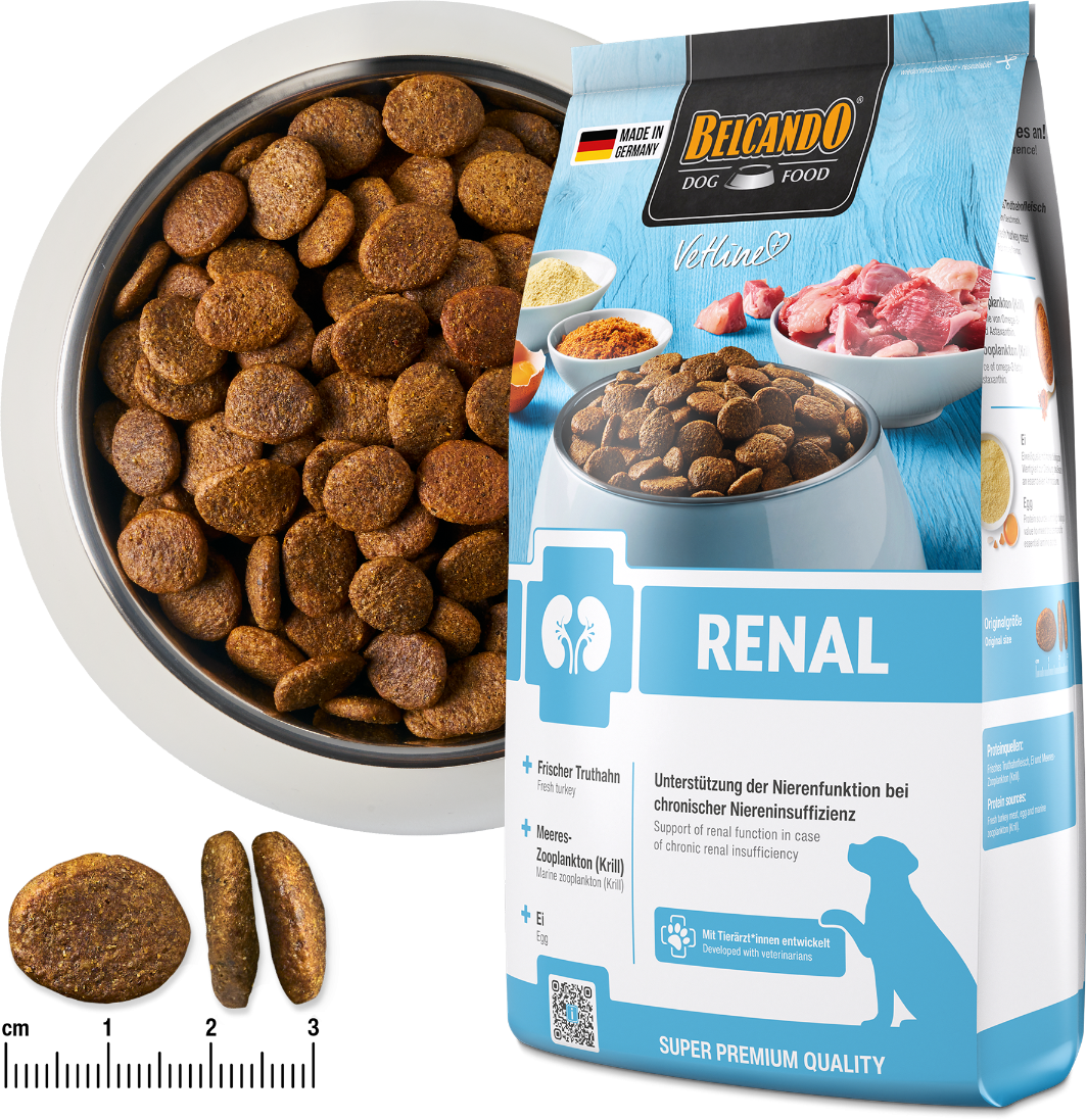 Targeted nutrition is a vital component in improving the quality of life for dogs struggling with kidney issues. BELCANDO Vetline Renal dry food is a special diet food for acute or chronic renal insufficiency, providing support without compromising on flavour. Made with high-quality ingredients such as fresh turkey, egg and krill, this recipe ensures excellent acceptance even by picky eaters. This specialised diet helps dogs maintain their vitality and well-being despite health challenges.