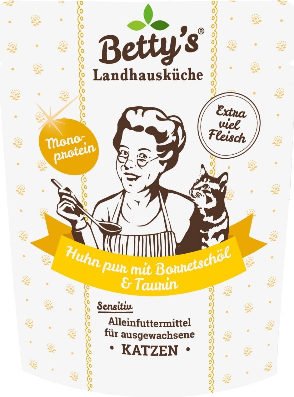 Betty's Landhausküche Wet Food Pouch Adult: Pure Chicken with Borage Oil, 250 g