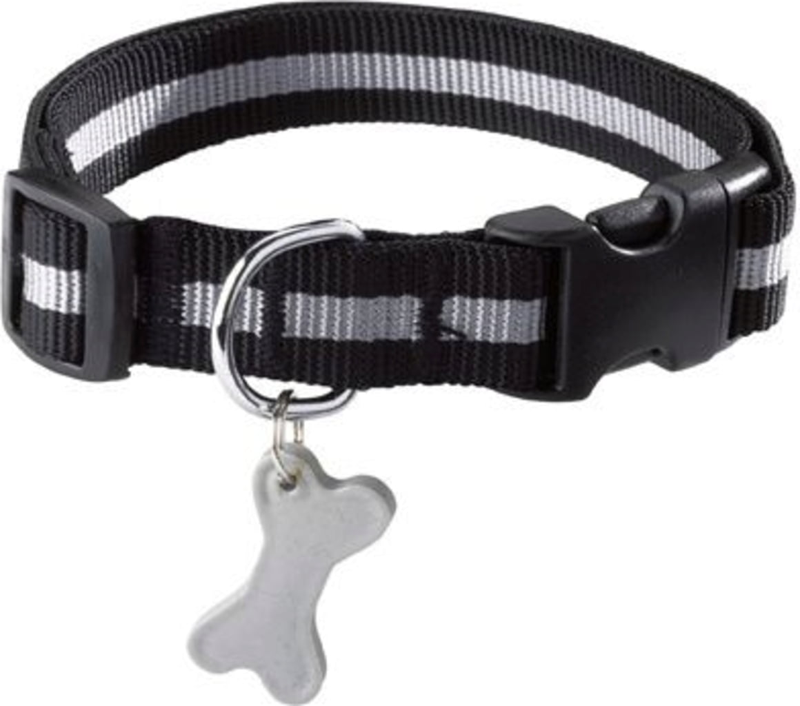 Playful and charming - this dog collar looks attractive and is immediately pet-friendly with its quick-release buckle. The size can be effortlessly adjusted, and the lead ring is compatible with all standard snap hooks. The amusing bone-shaped silicone tag prevents the jingling of any dog tags. Durable nylon and fantastic colours make this practical accessory a daily companion for shared adventures.