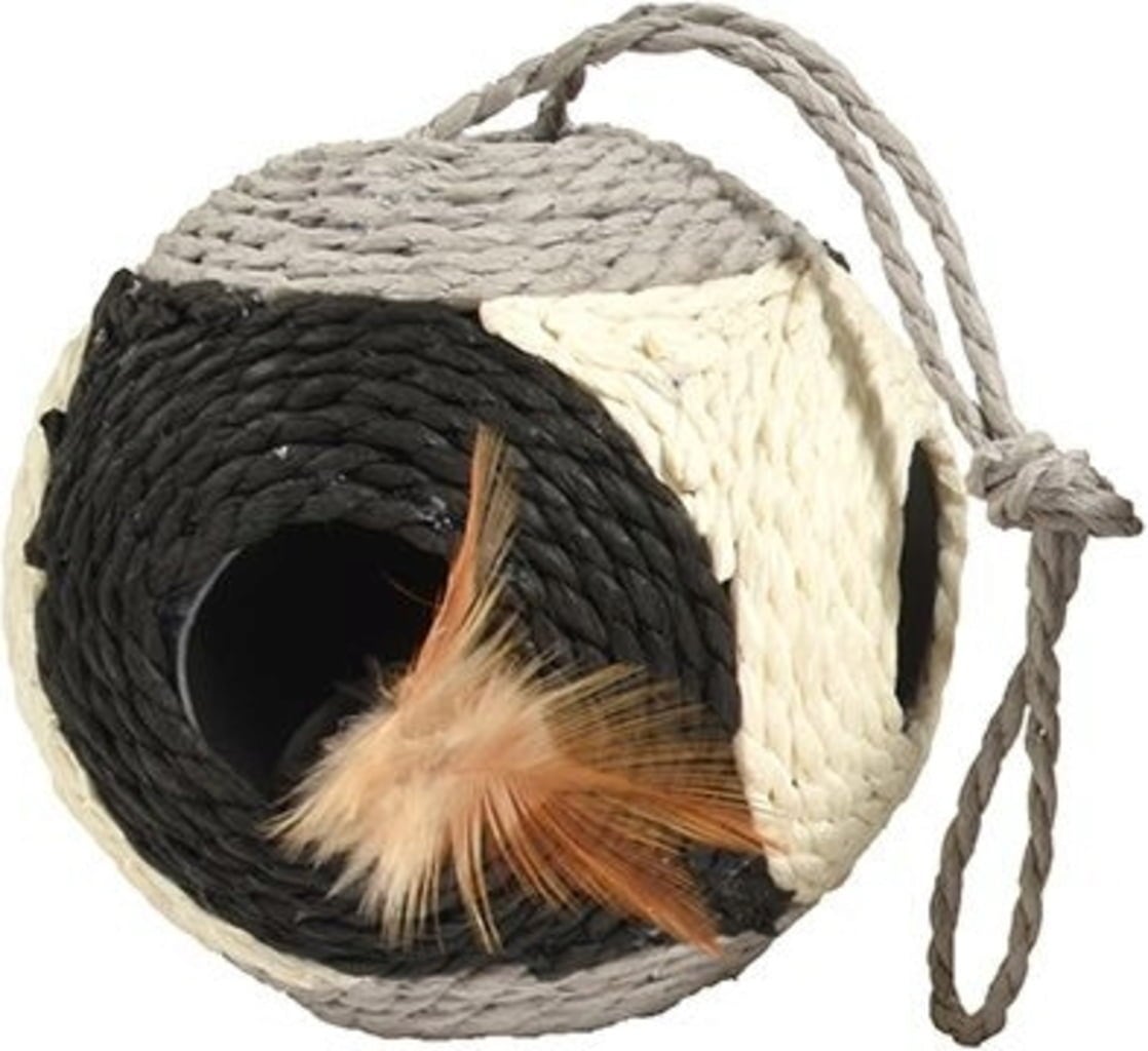 This hanging ball serves as both a scratching post and a toy: it's wrapped in extremely durable thread made from recycled paper. Additionally, it teases your cat with a small tuft of feather quill inside the hollow ball - which stimulates their natural hunting instincts.