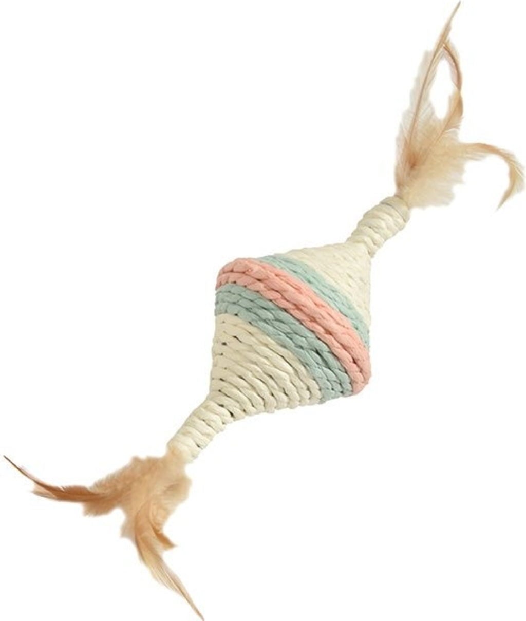Innovative material, maximum play fun: This toy by Bobby is entirely made of recycled paper rope, skilfully wrapped into a top shape. Real feathers at both ends stimulate the natural play and hunting instincts. Thanks to its small size, cats or smaller dogs can easily carry the toy.