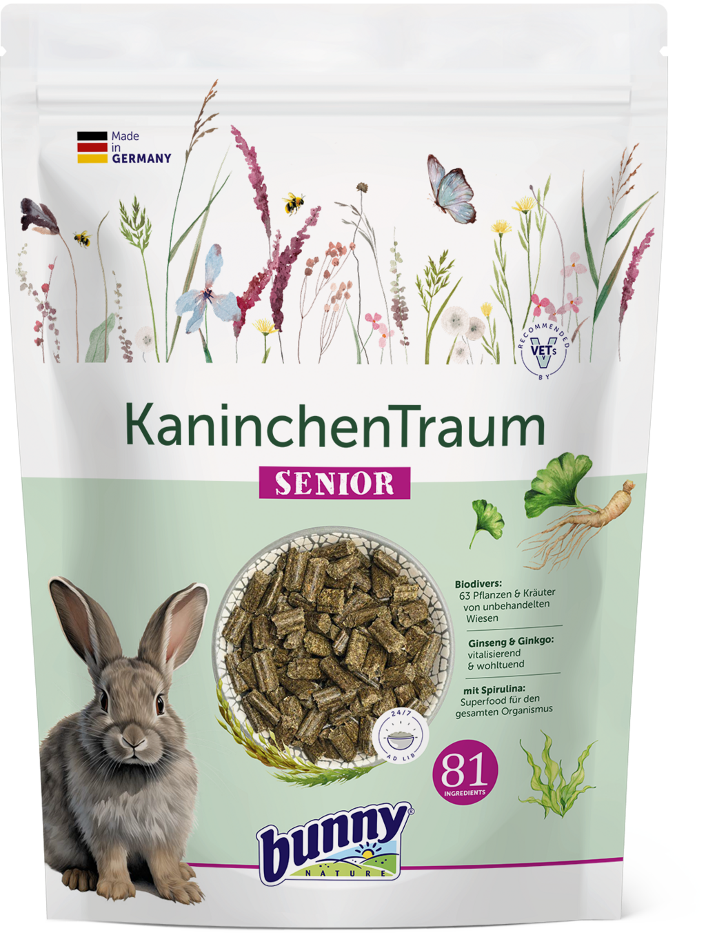 When rabbit dreams come true... this delicious pet food is never far away! With 42 different plants from untreated meadows, as well as Indian frankincense, ginseng, and ginkgo, it offers delicious variety in the food bowl and supports a vibrant life for your dwarf rabbits even in advanced age.