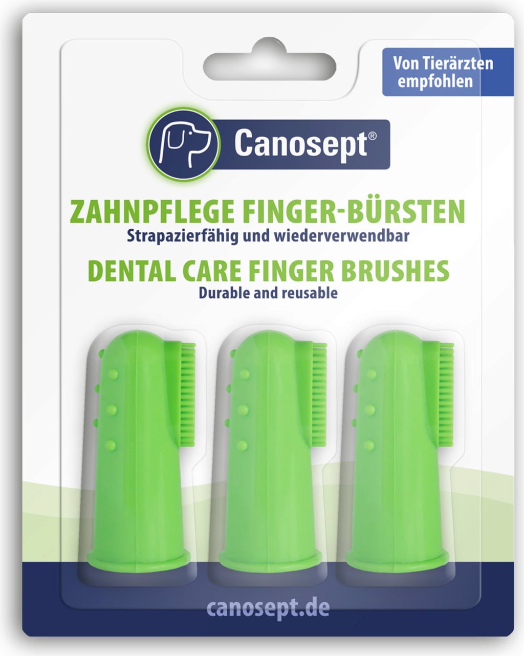 Playfully introduce your dog to the Canosept Dental Care Finger Brushes.