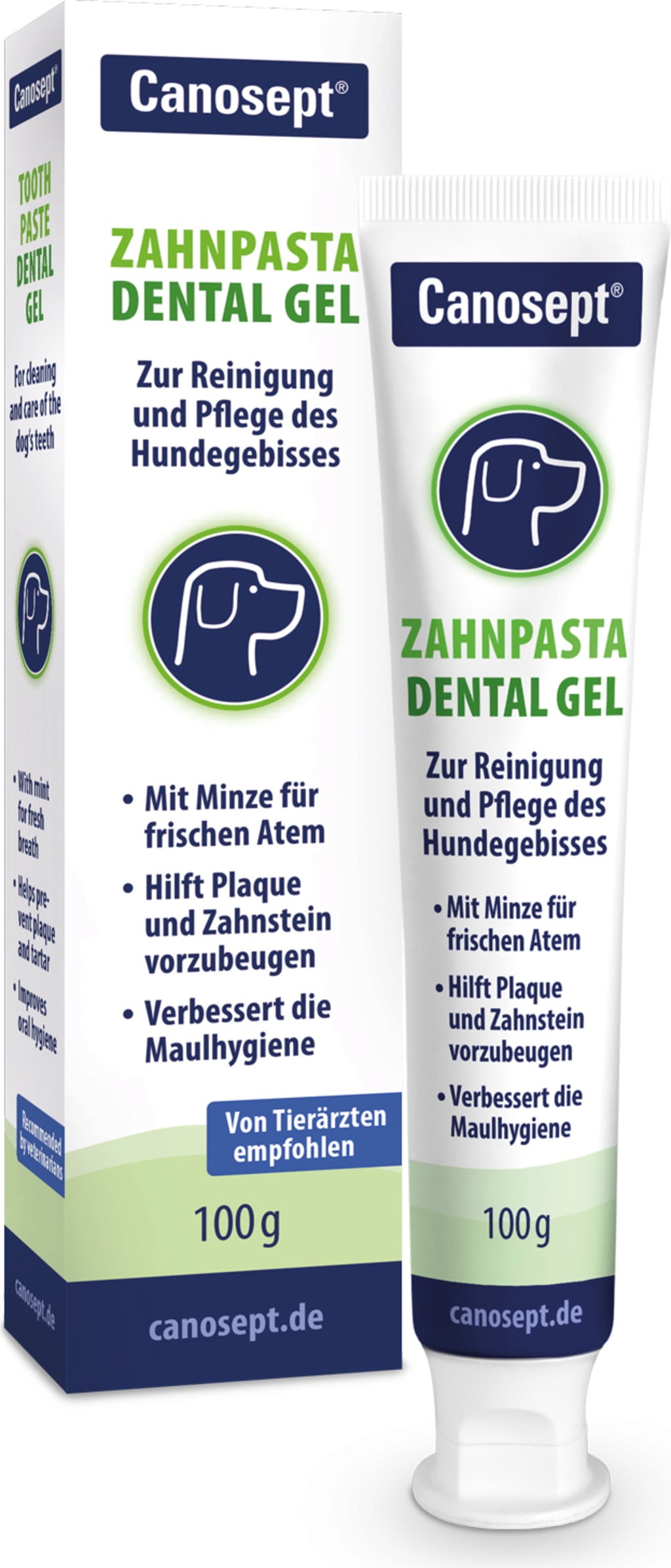 With the Dental Gel Toothpaste, Canosept has developed a dog-friendly formulation to help prevent plaque, tartar and cavities through regular dental care. Fine peppermint oil refreshes breath. Made without added sugar, fluoride and xylitol.