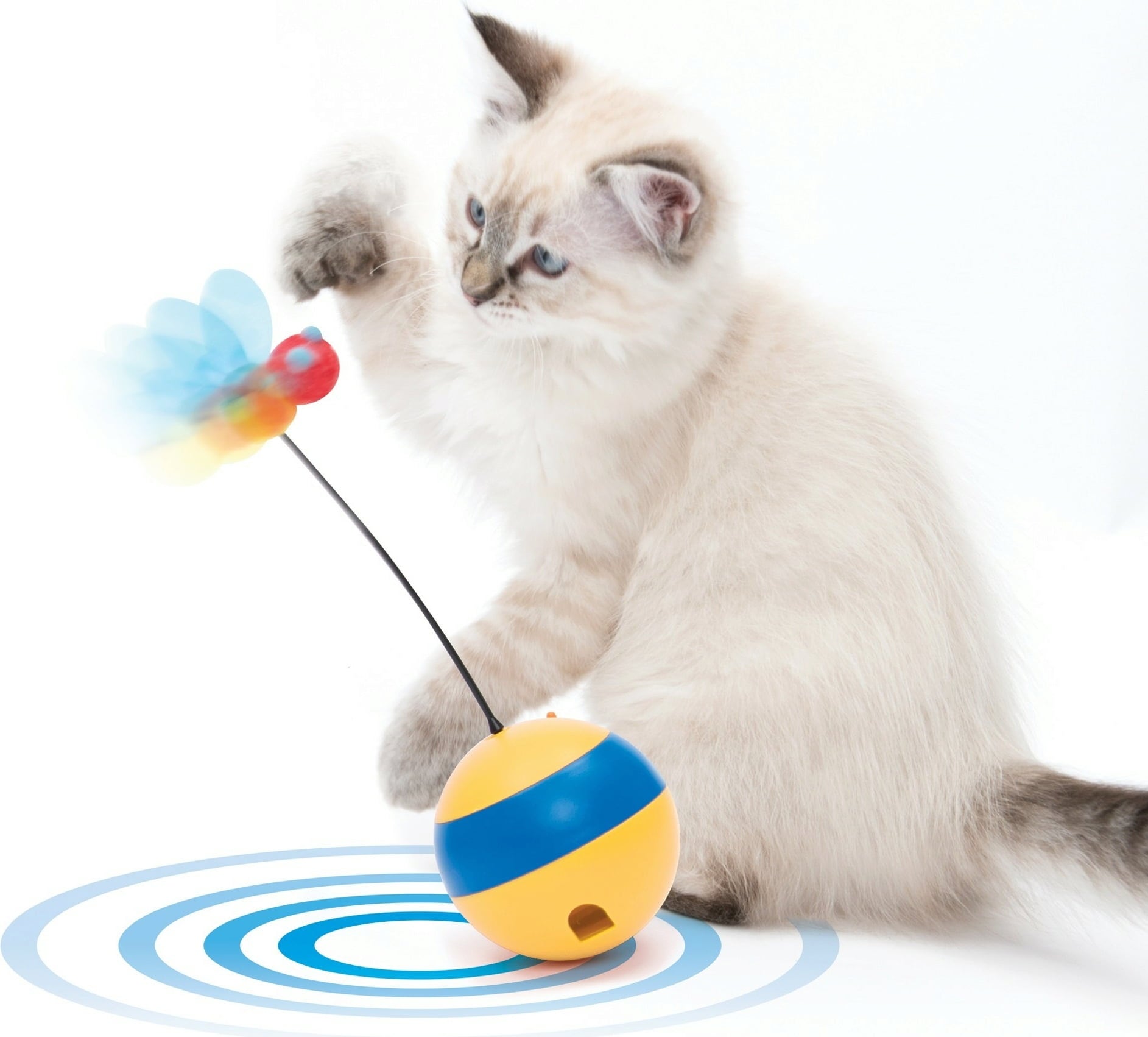 Looking to really engage your cat? This interactive toy by Catit has got you covered: The ball spins rapidly on its axis, and the wobbly bee encourages your cat to engage in exciting play. Additionally, light beams help train your cat's catching skills. The ball can also be filled with small treats, which magically drop out of a small opening during play, delighting your cat.