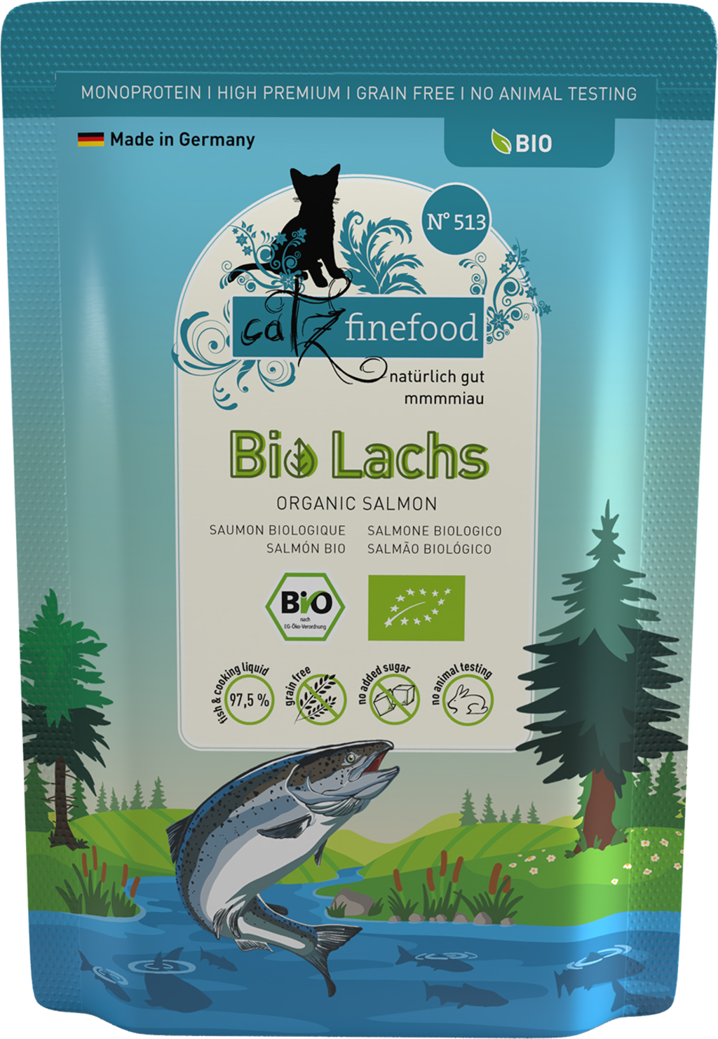 catz finefood Organic No.513 Salmon Pouch, 85 g