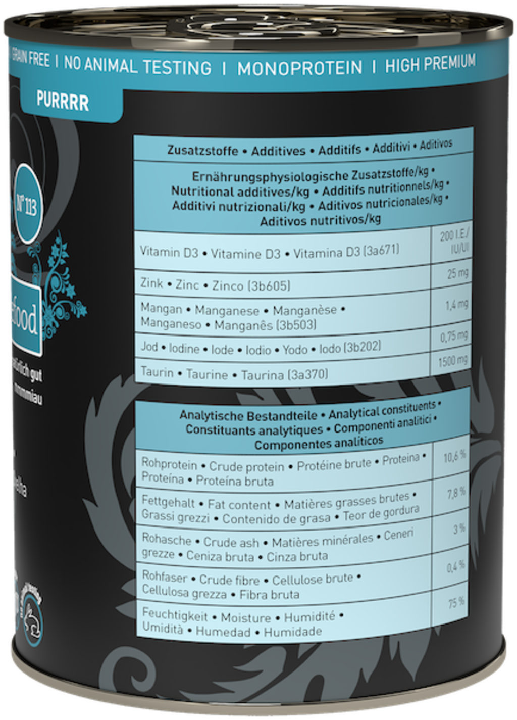 - Free from reformed meat, meat meal, fillers and meat substitutes, grains, gluten, added sugar, attractants, flavour enhancers as well as artificial flavourings, colours and preservatives