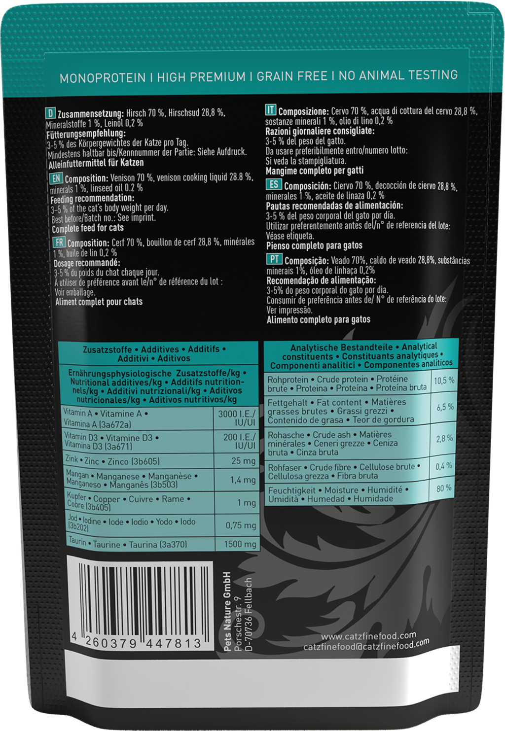 catz finefood Purrrr No. 121 Venison Pouch, 85 g