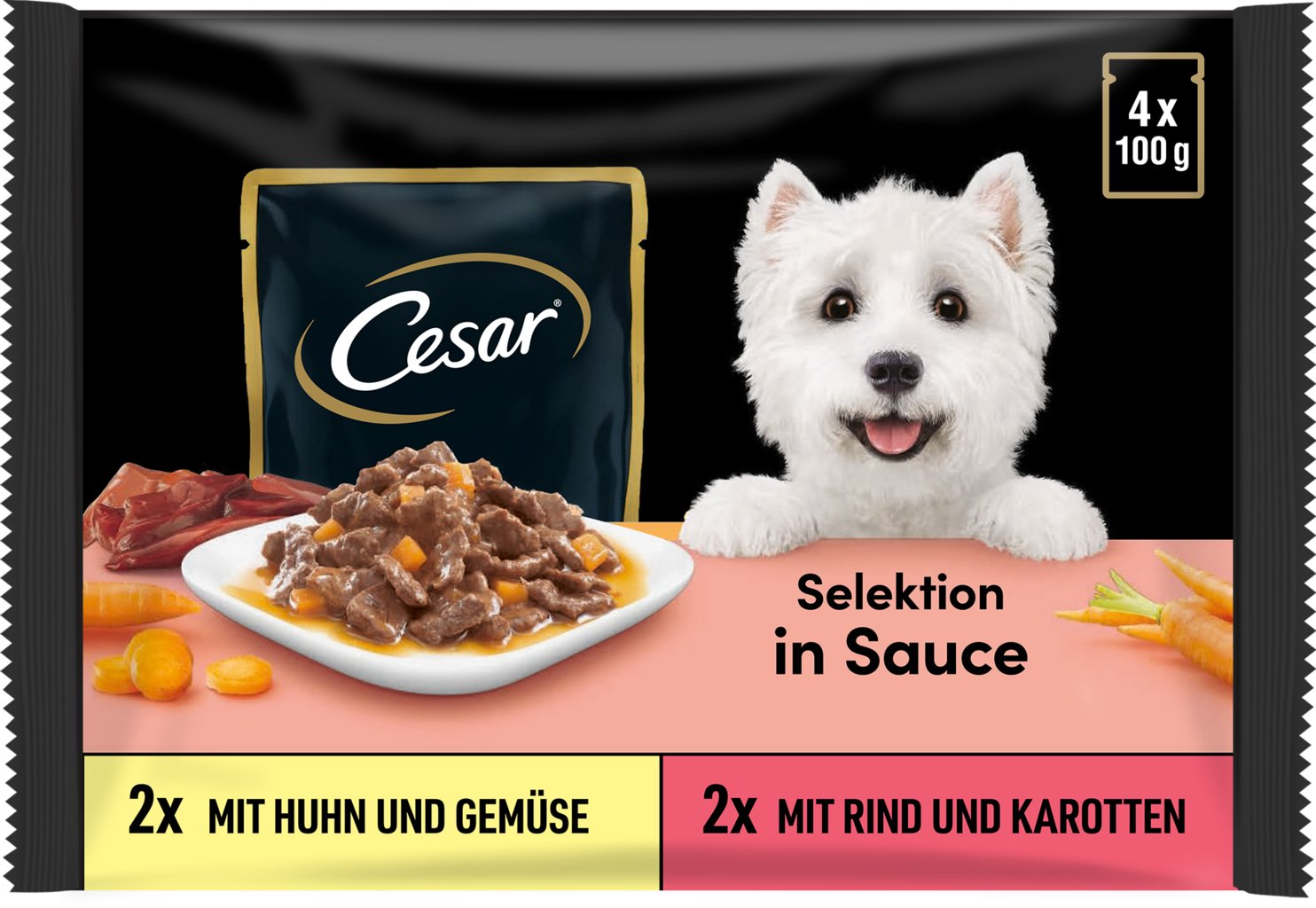 Cesar Selection in Sauce - Chicken & Vegetables, Beef & Carrots, 4 x 100 g, 400 g