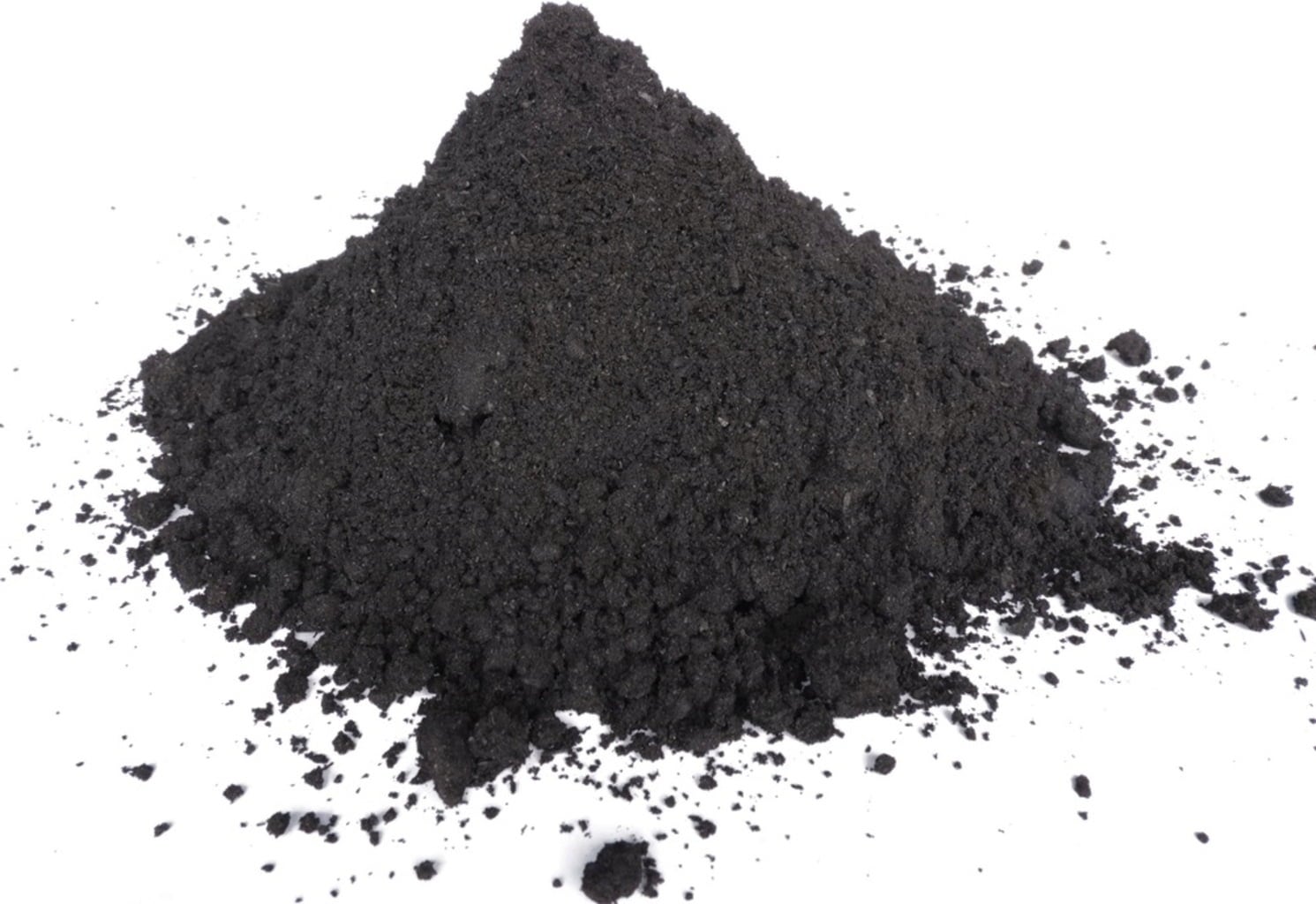 - The charcoal is made from a mixture of different biochars and is offered in finely ground form.