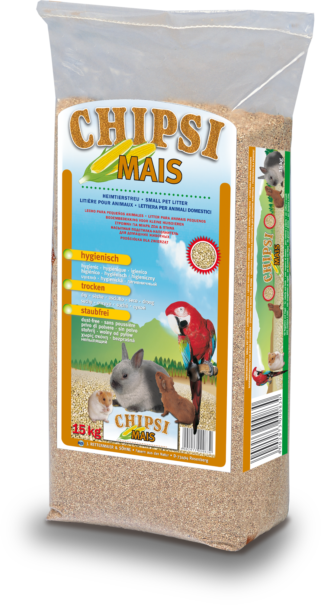CHIPSI MAIS is a premium alternative to traditional bedding, made from corn cobs. Its heavier granules have the advantage of not sticking to your pet's fur or paws, making it ideal for animals living in open cages within living areas. The granules stay in the cage, reducing mess and maintaining cleanliness.