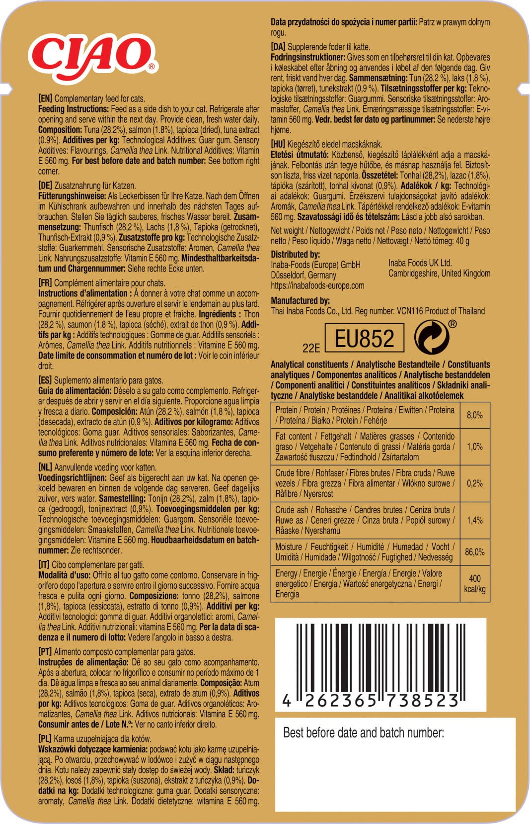 Item no.: CHU-EU852, EAN: 4262365738523