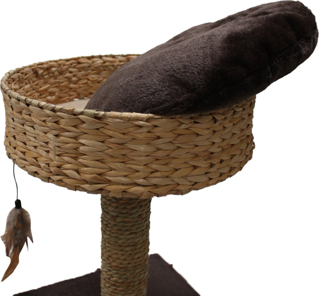 The post is wrapped in durable sisal rope, which withstands sharp claws well and can be replaced. The basket is made of water hyacinth and comes with a plush cushion that fits perfectly. The super-soft material adds a touch of luxury your cat will appreciate. It can be washed when necessary.