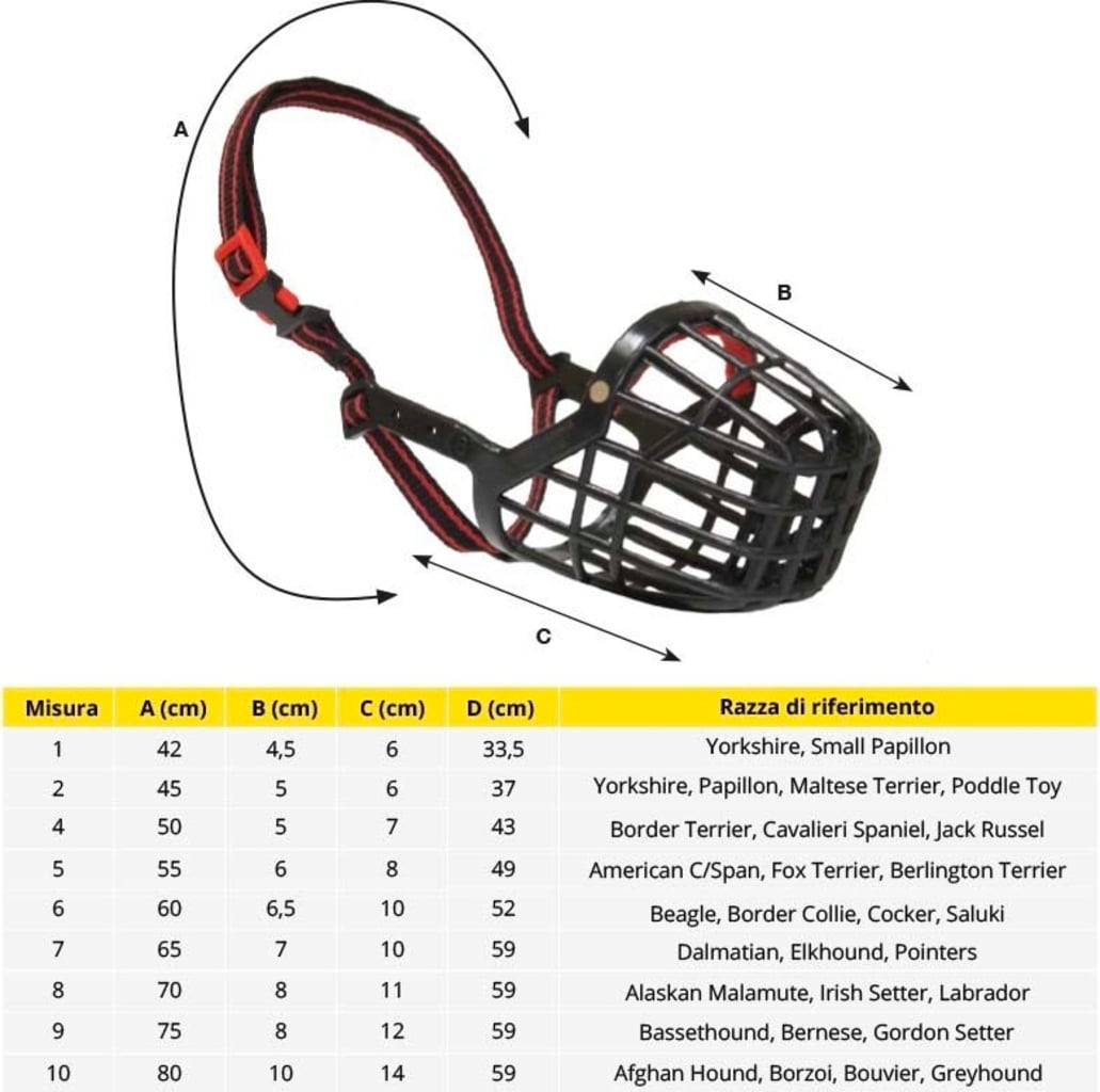 The muzzle comes with an adjustable nylon strap and a plastic snap fastener. Its open design ensures good ventilation, so your dog will not feel confined.