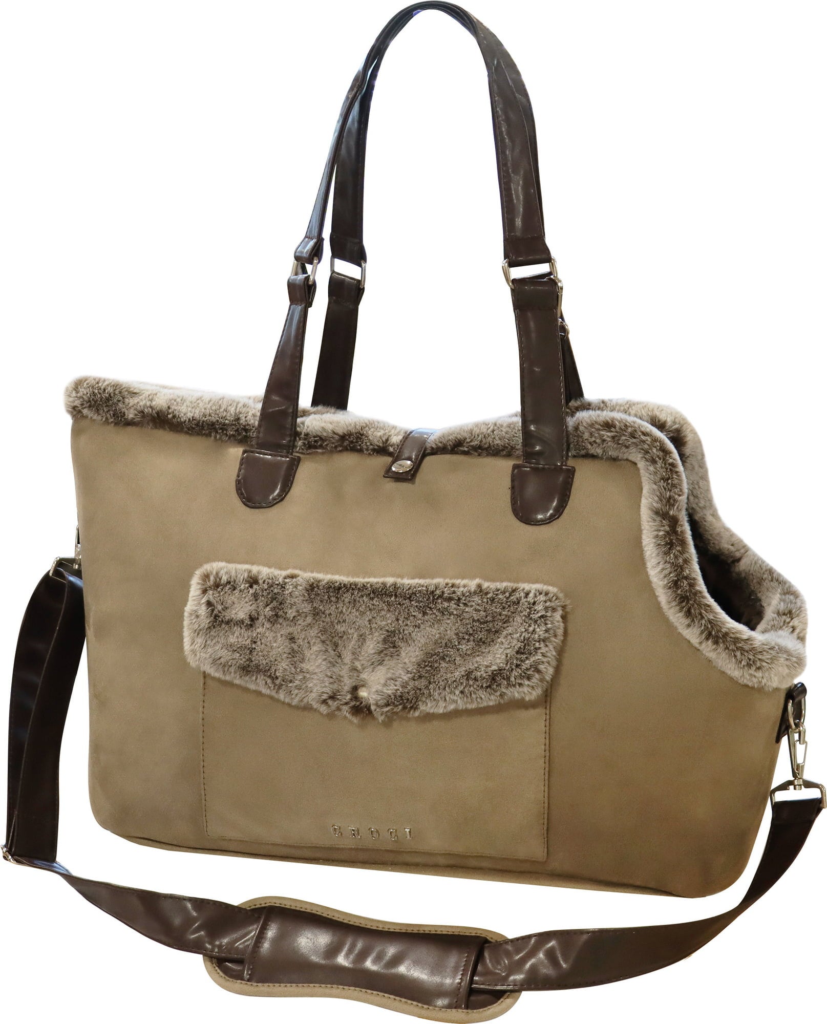 The inside is lined with soft fur and covered with soft suede fabric. The bottom is softly padded for extra comfort. A hook makes it safe and prevents your dog from accidentally escaping.