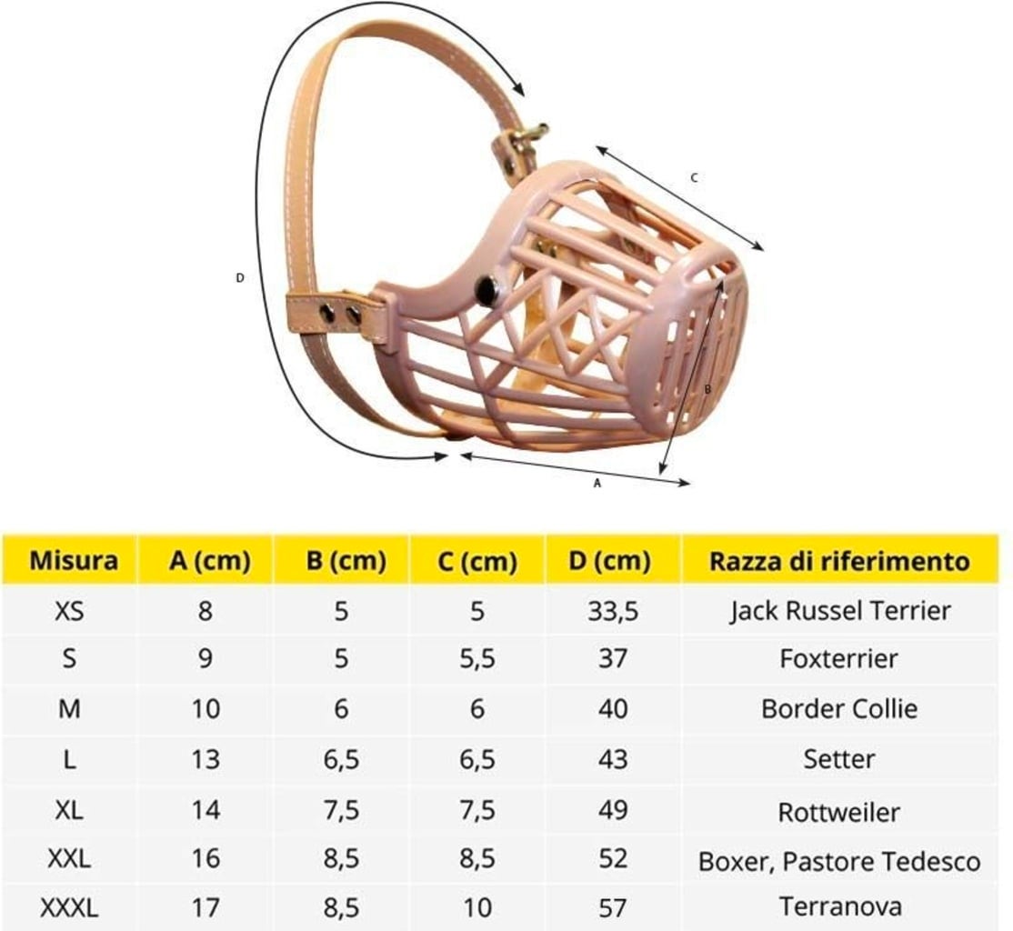 The muzzle comes with a faux leather strap to ensure a secure fit and prevent any irritation or chafing on the dog's head. The size of the muzzle can be adjusted with a robust stainless steel buckle. As the muzzle is open, it ensures good ventilation so your pet does not feel confined.
