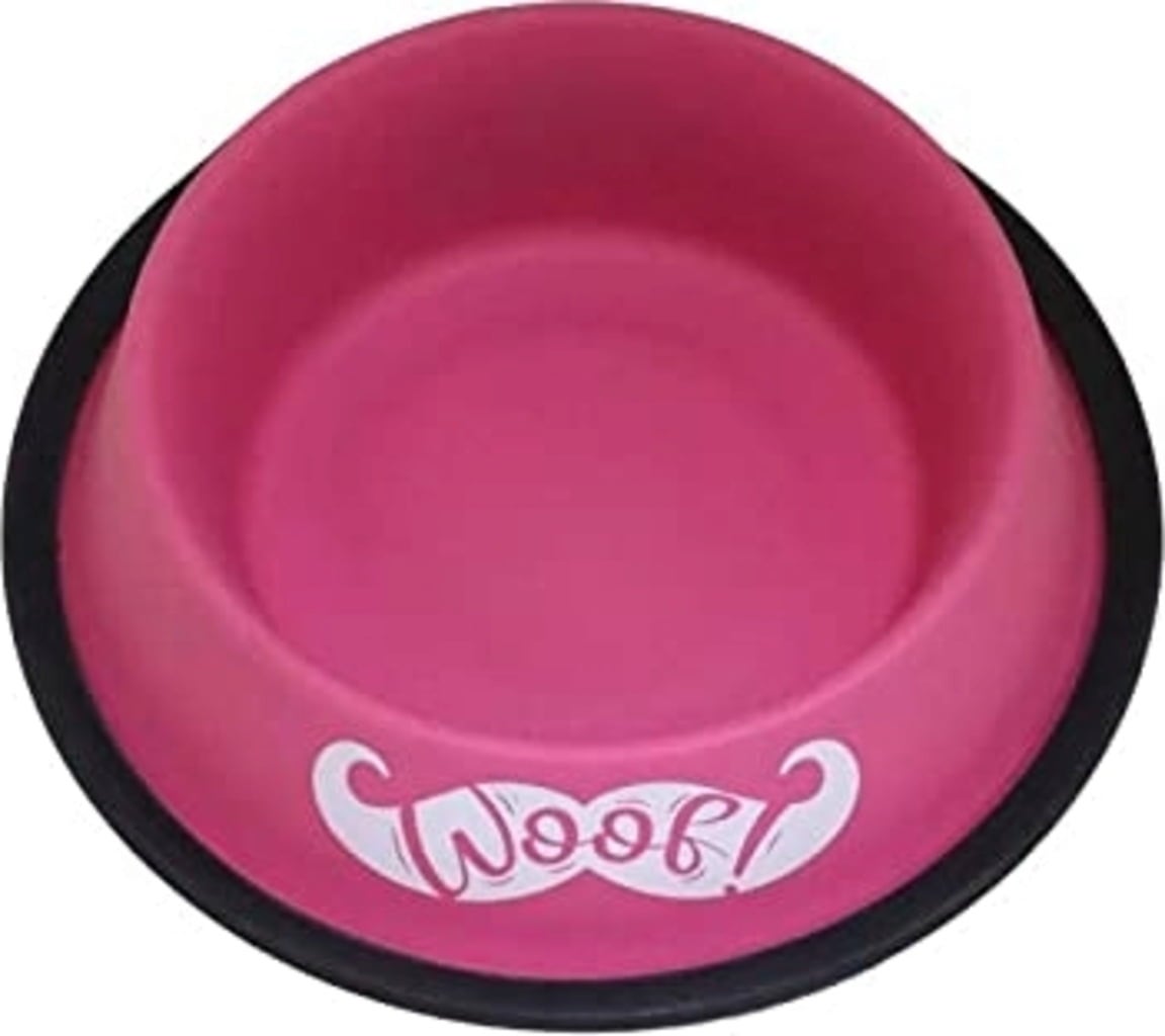 This is a drinking and feeding bowl made of stainless steel with a cute print design. The bottom of the bowl is equipped with a non-slip rubber to prevent it from sliding during meals and scratching your floors!