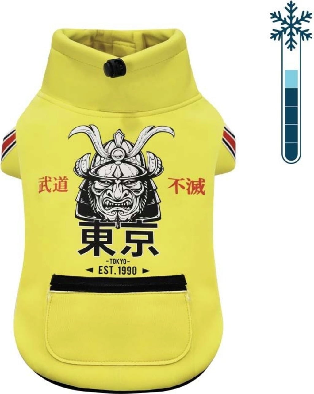 Dress your dog up in style with a Japanese look with the Tech Samurai sweater by Croci. It combines Japanese accents with high-quality materials to create a unique look. Japanese text and the image of a samurai warrior add to the trendy finish.