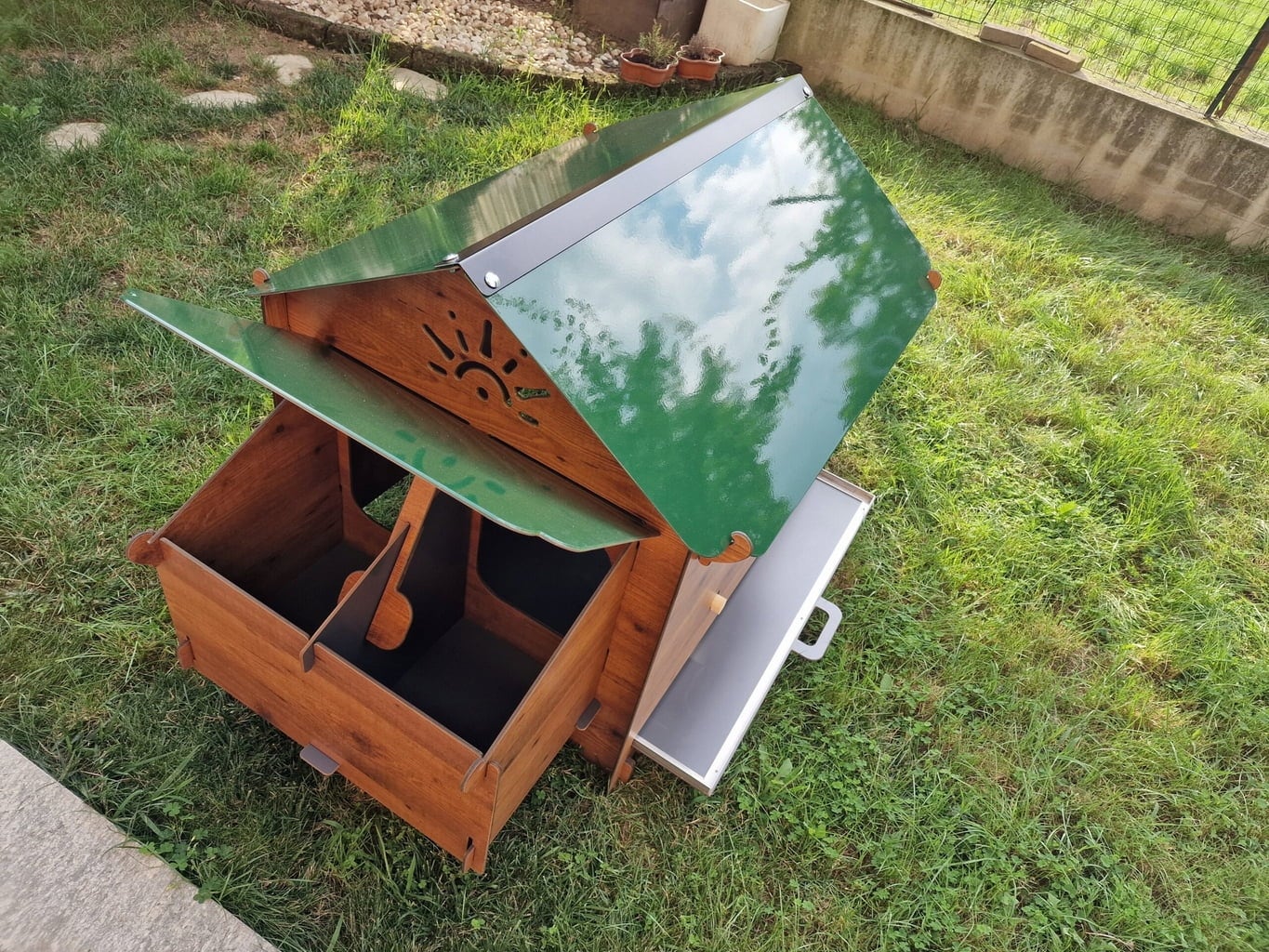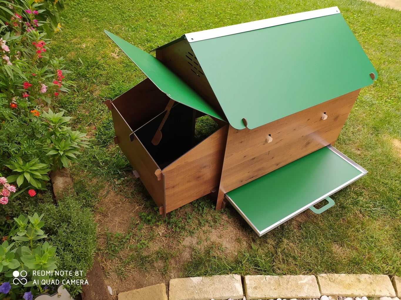 This is the perfect place for your hens! With plenty of space, 2 perches, and 2 nests, it offers your chickens everything they need for a cosy home. The HPL laminate construction keeps parasites at bay, ensuring no unwanted cohabitants. Enjoy the happiness of your own little chicken farm.