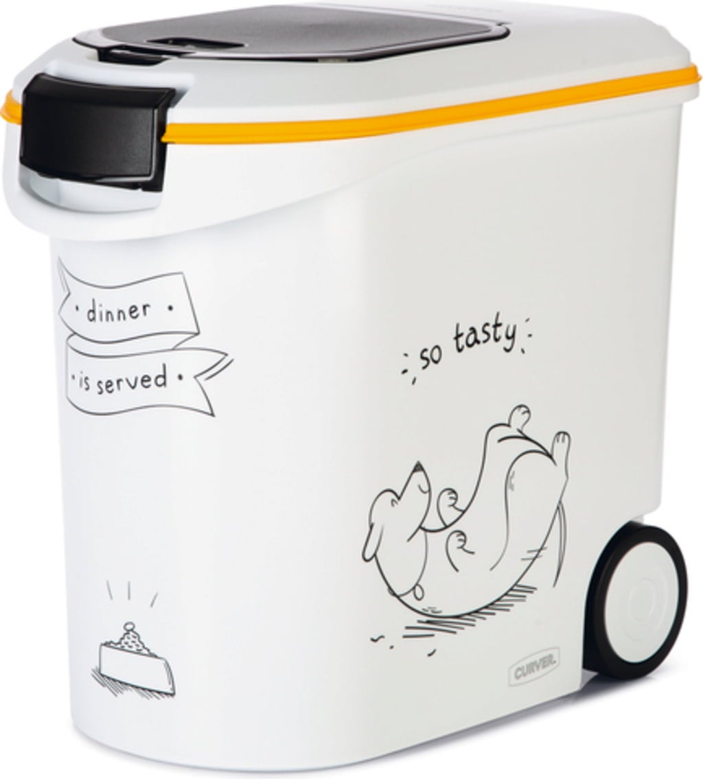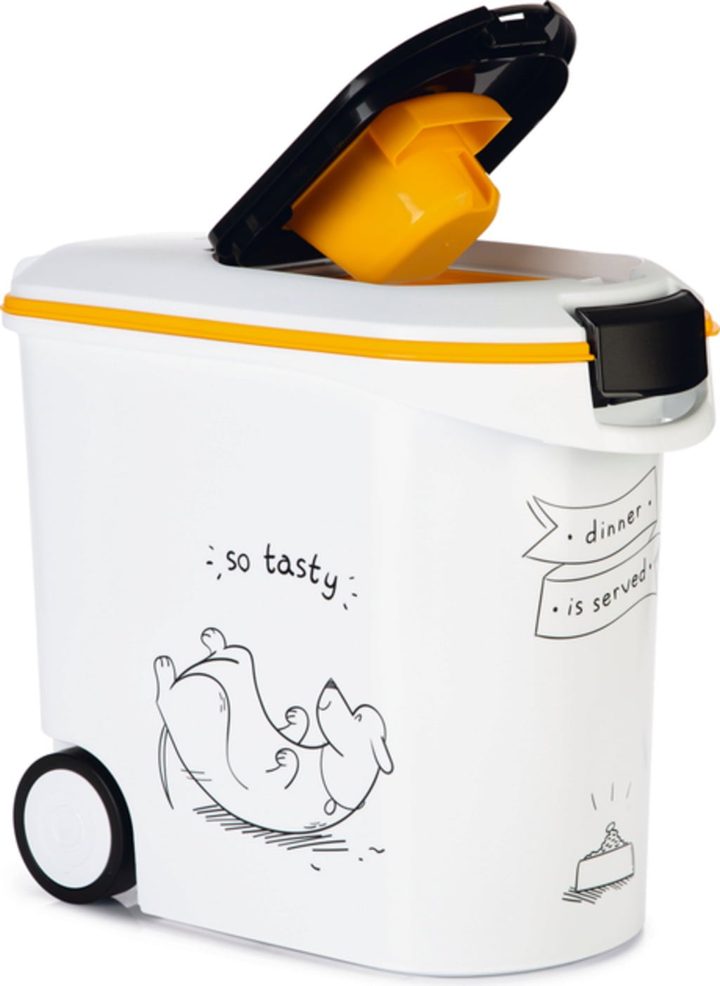 Food tastes even better from this delightful container. The cute dog motif and its clever construction make it a real must-have for style-conscious dog owners.
