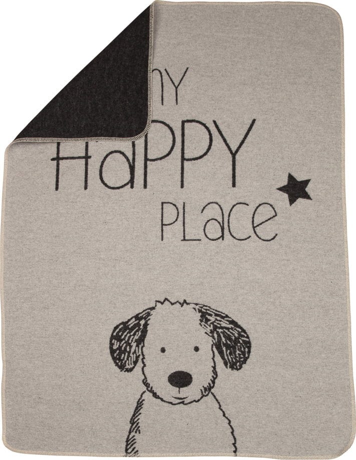 The my happy place dog blanket is made from 85% recycled cotton. The high-quality blanket is easy to clean - machine washable at 40°C.