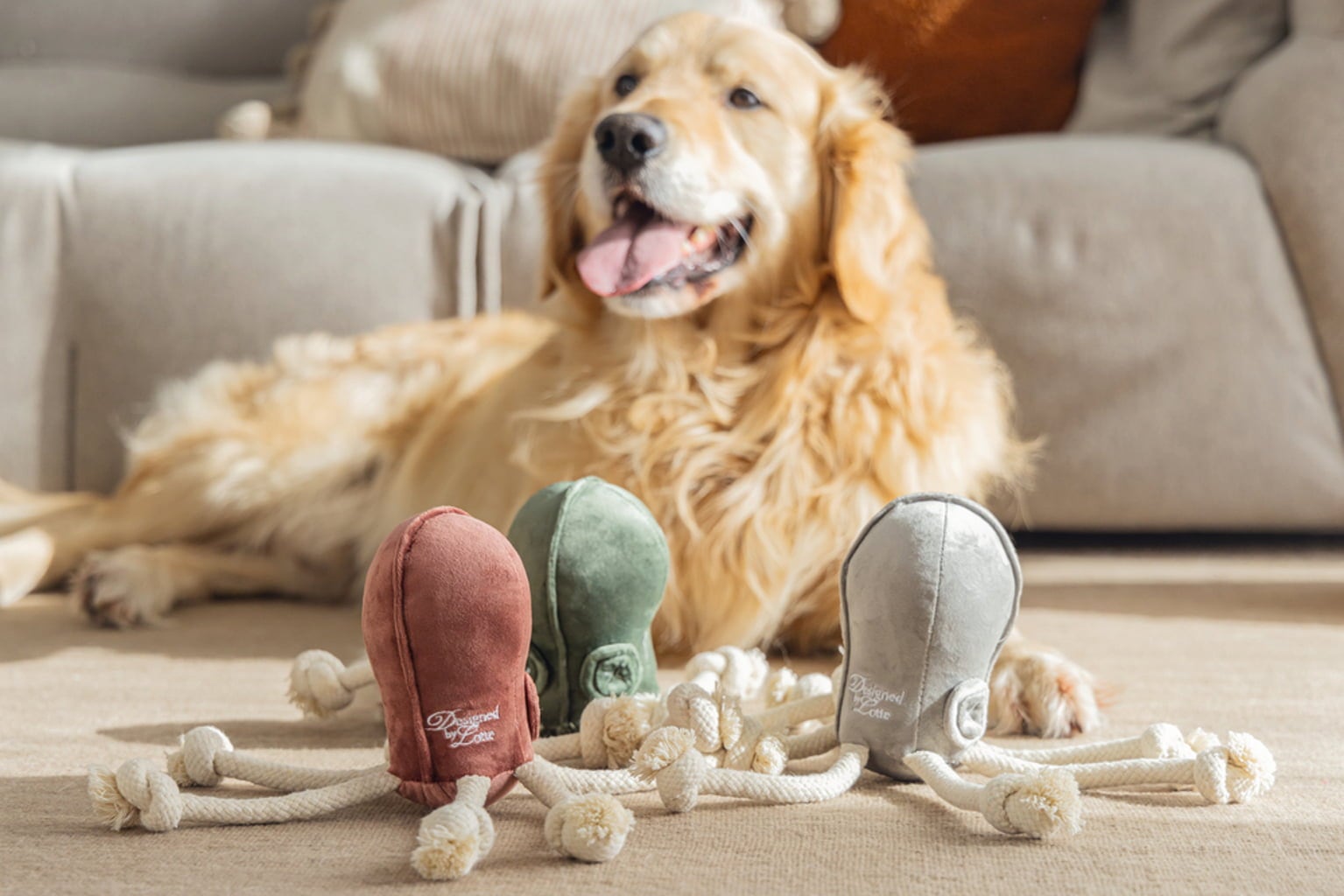 English reviews written for Designed by Lotte Velvet dog toy Octo Aisha