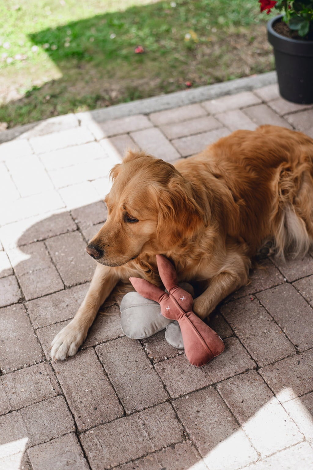 This rabbit, crafted from wonderfully soft velvet, with its extra-long ears, is perfect for cuddling and playing. Thanks to its modern design, it seamlessly fits into any stylish interior, making it the first choice for dog owners with high aesthetic standards.