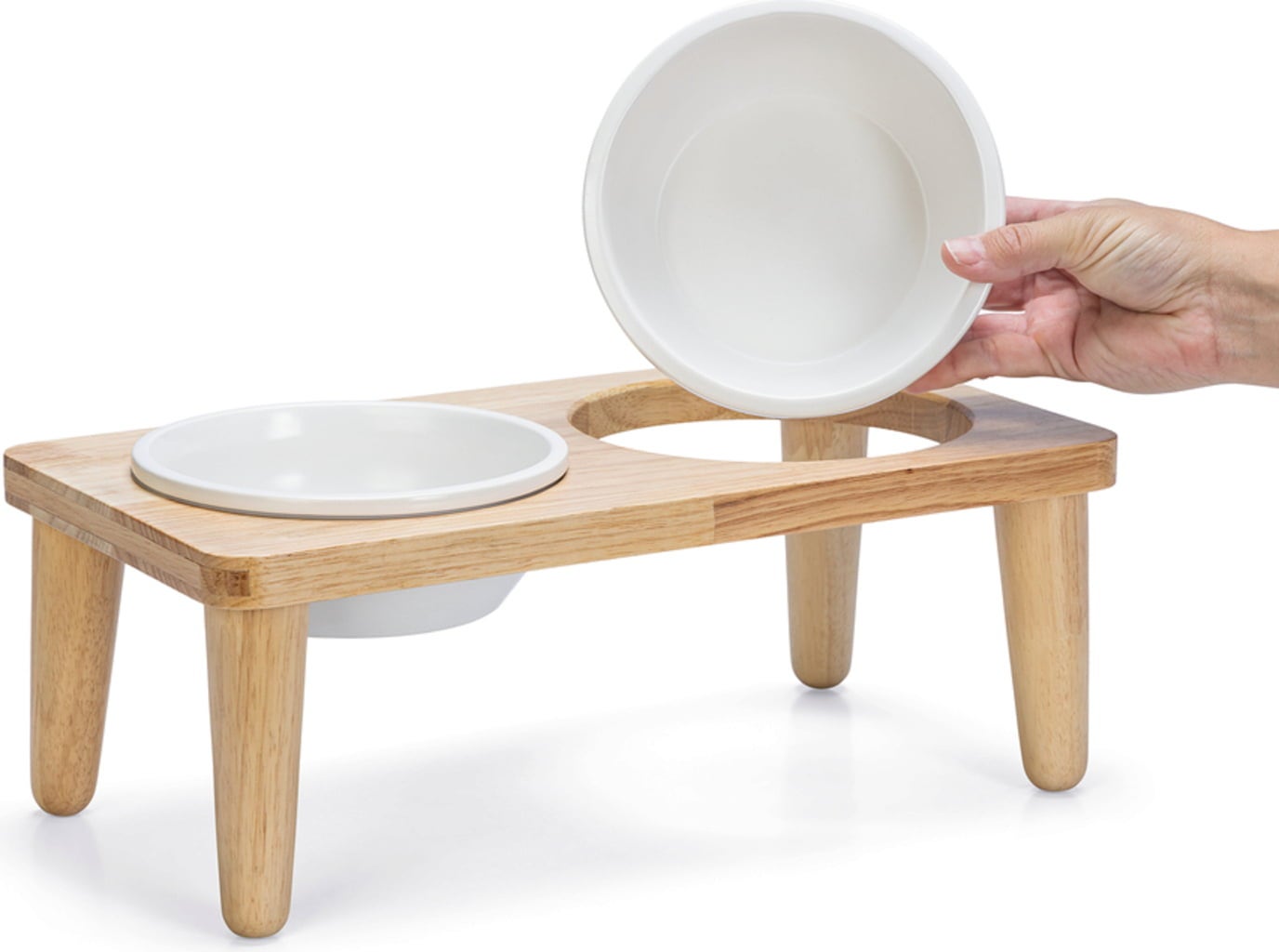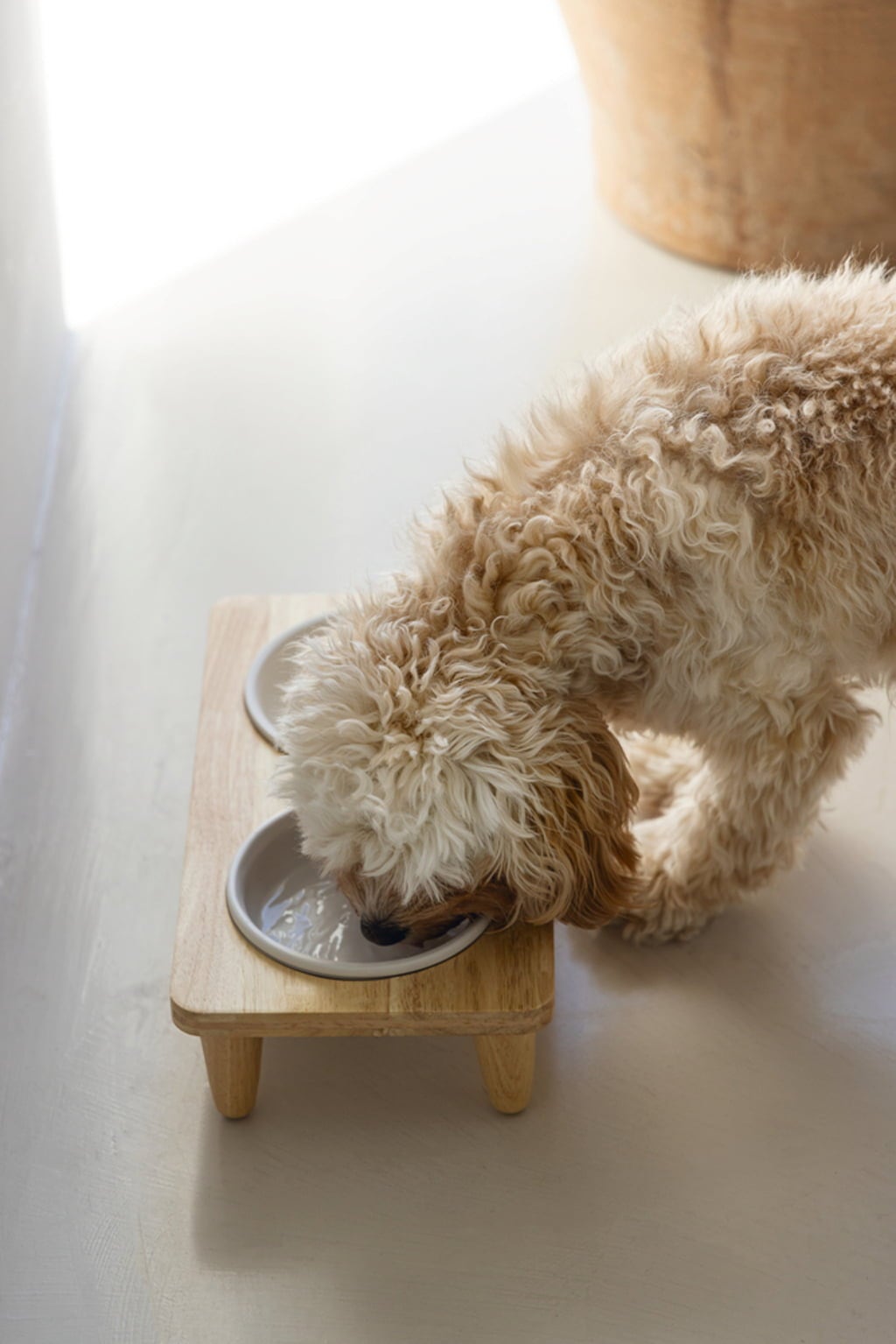 Time to dine! This elegant dinner set made of wood is as decorative as it is practical, offering two ceramic bowls to accommodate both pet food and water. The modern minimalist design seamlessly blends into various interior styles, making this set a must-have for style-conscious dog owners.