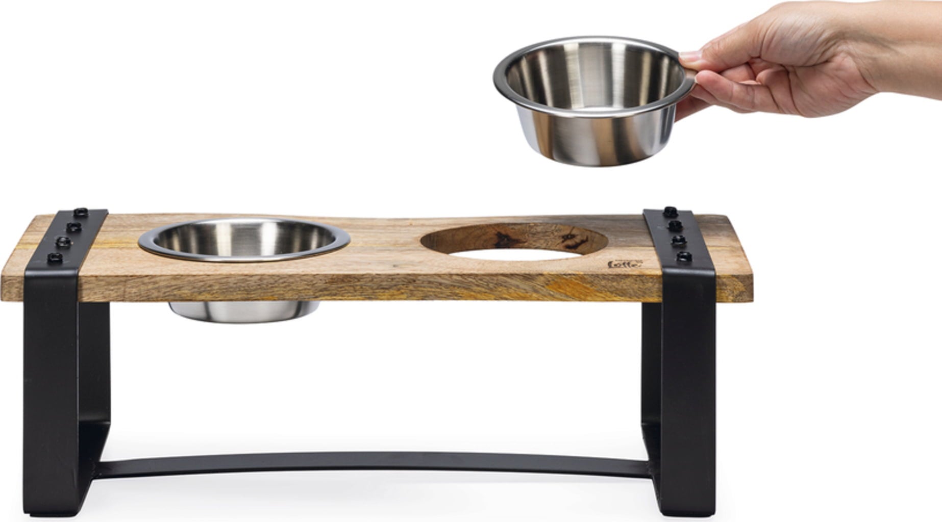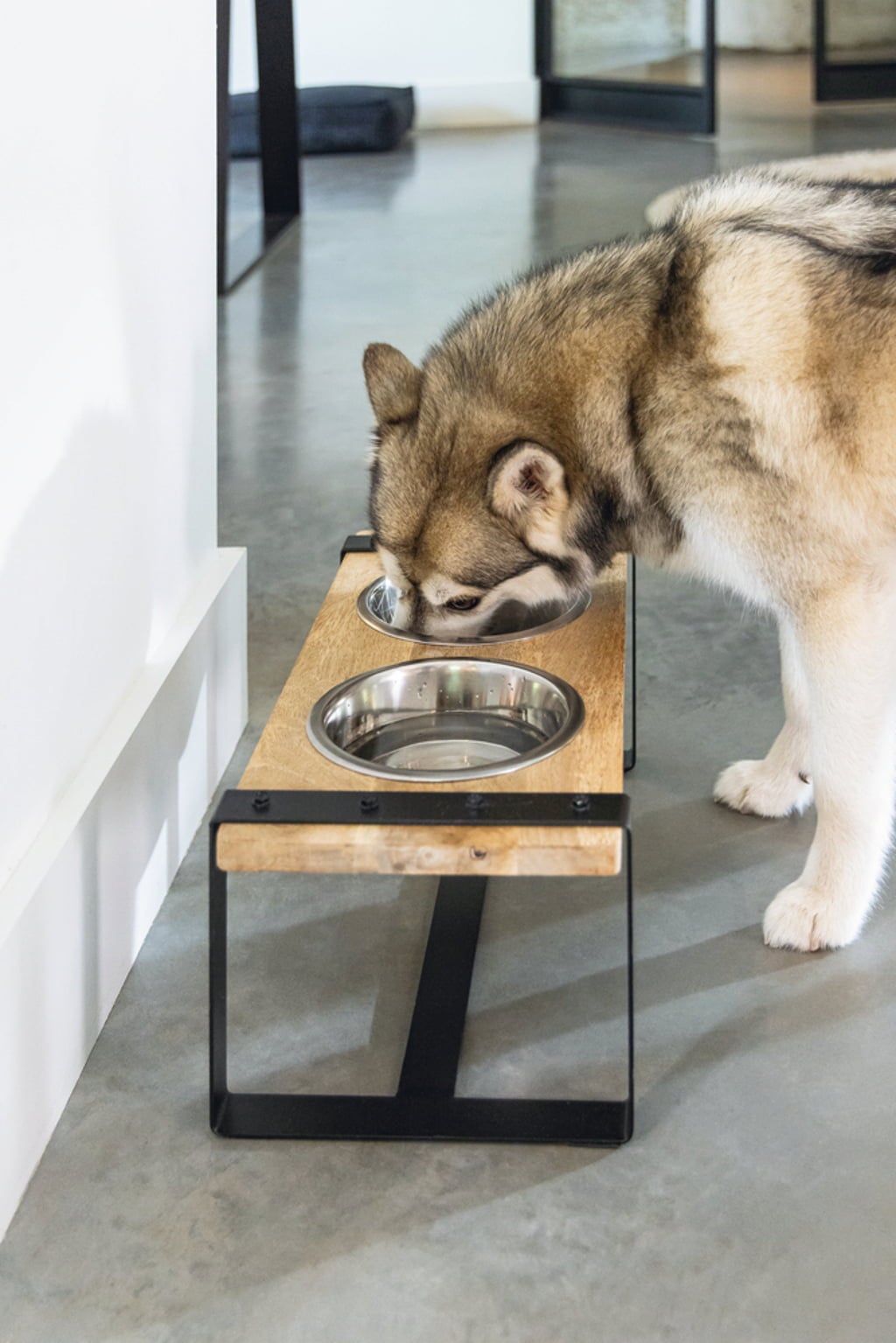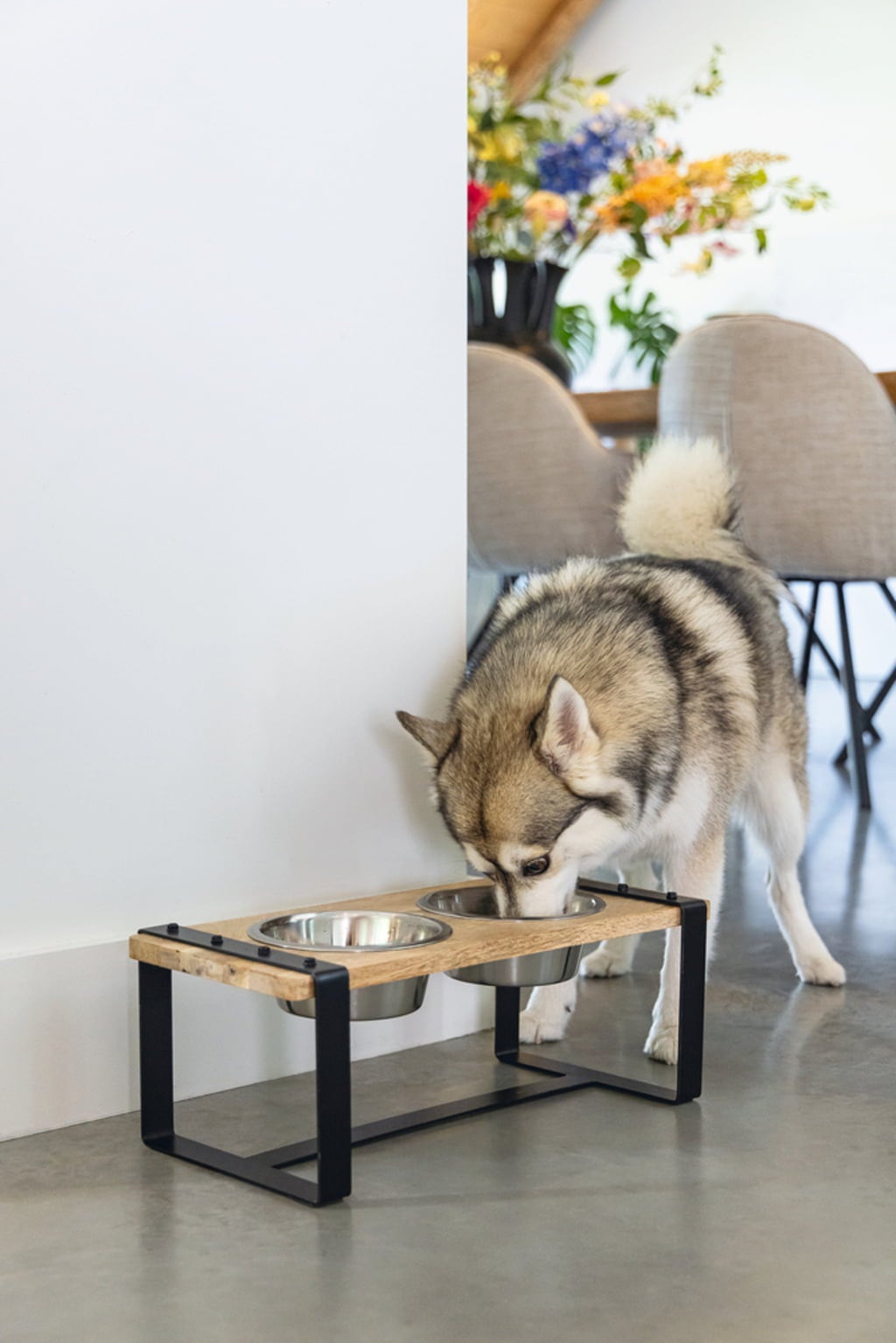 Please take a seat! This dinner set for dogs is not only incredibly practical but also looks fantastic and effortlessly blends into a wide range of interior styles with its clean modern design. Exclusive mango wood gives it an elegant appearance, making it a must-have for style-conscious dog owners.