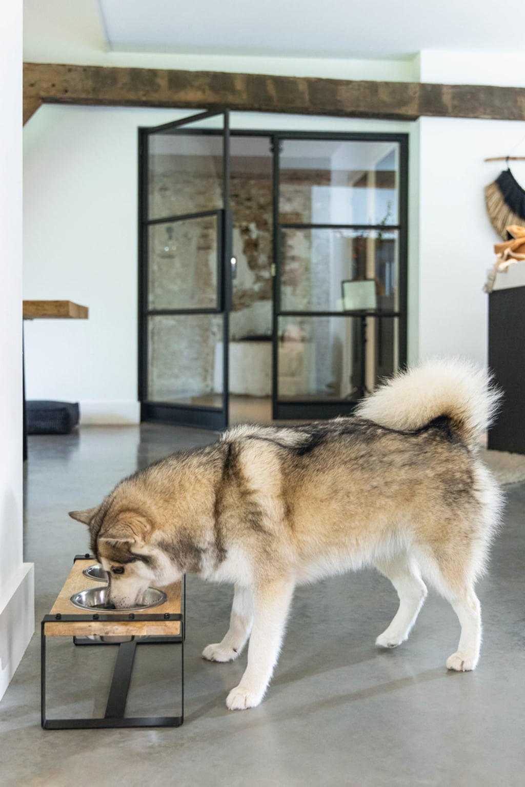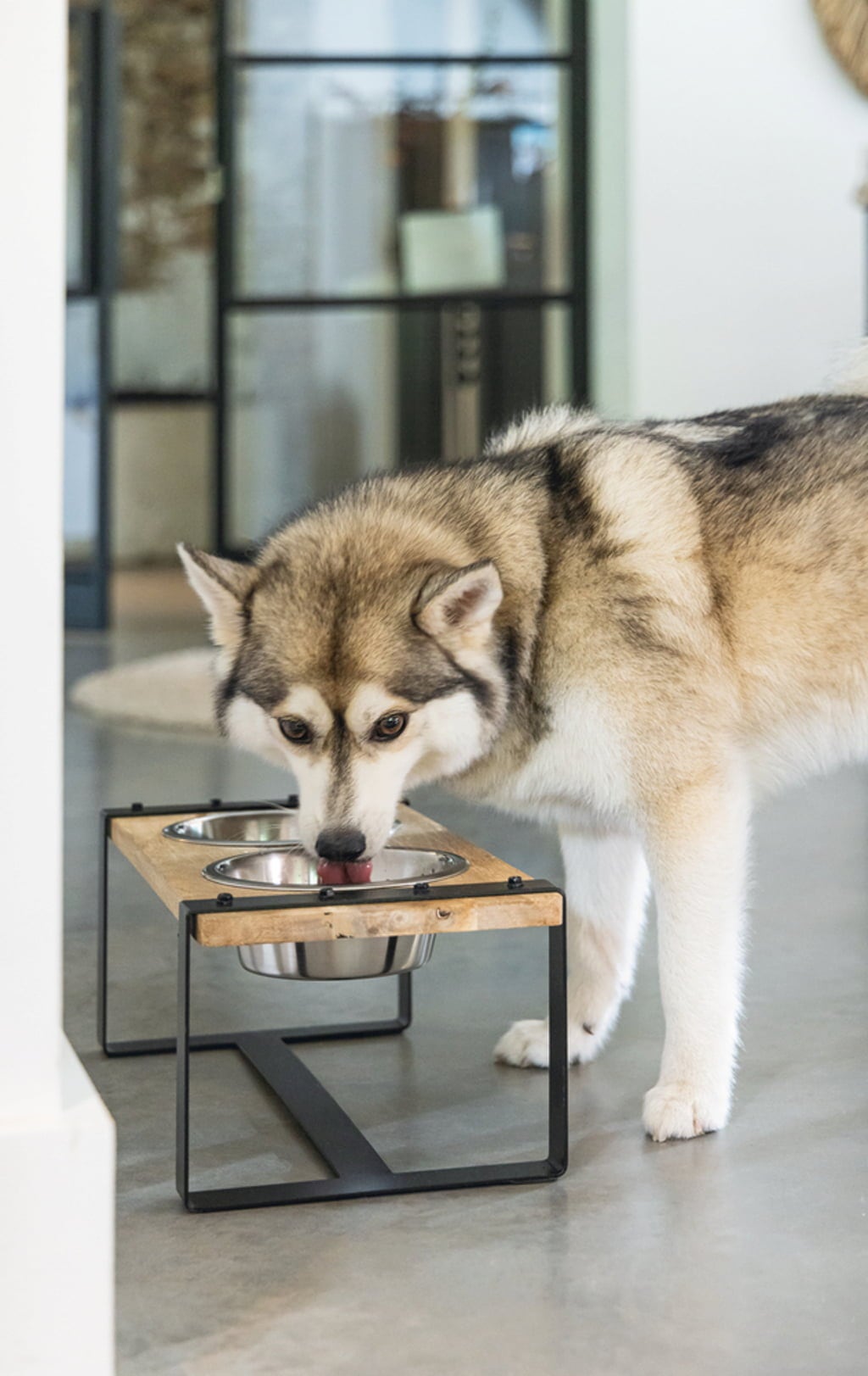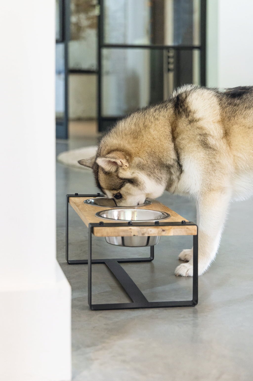 Please take a seat! This dinner set for dogs is not only incredibly practical but also looks fantastic and effortlessly blends into a wide range of interior styles with its clean modern design. Exclusive mango wood gives it an elegant appearance, making it a must-have for style-conscious dog owners.