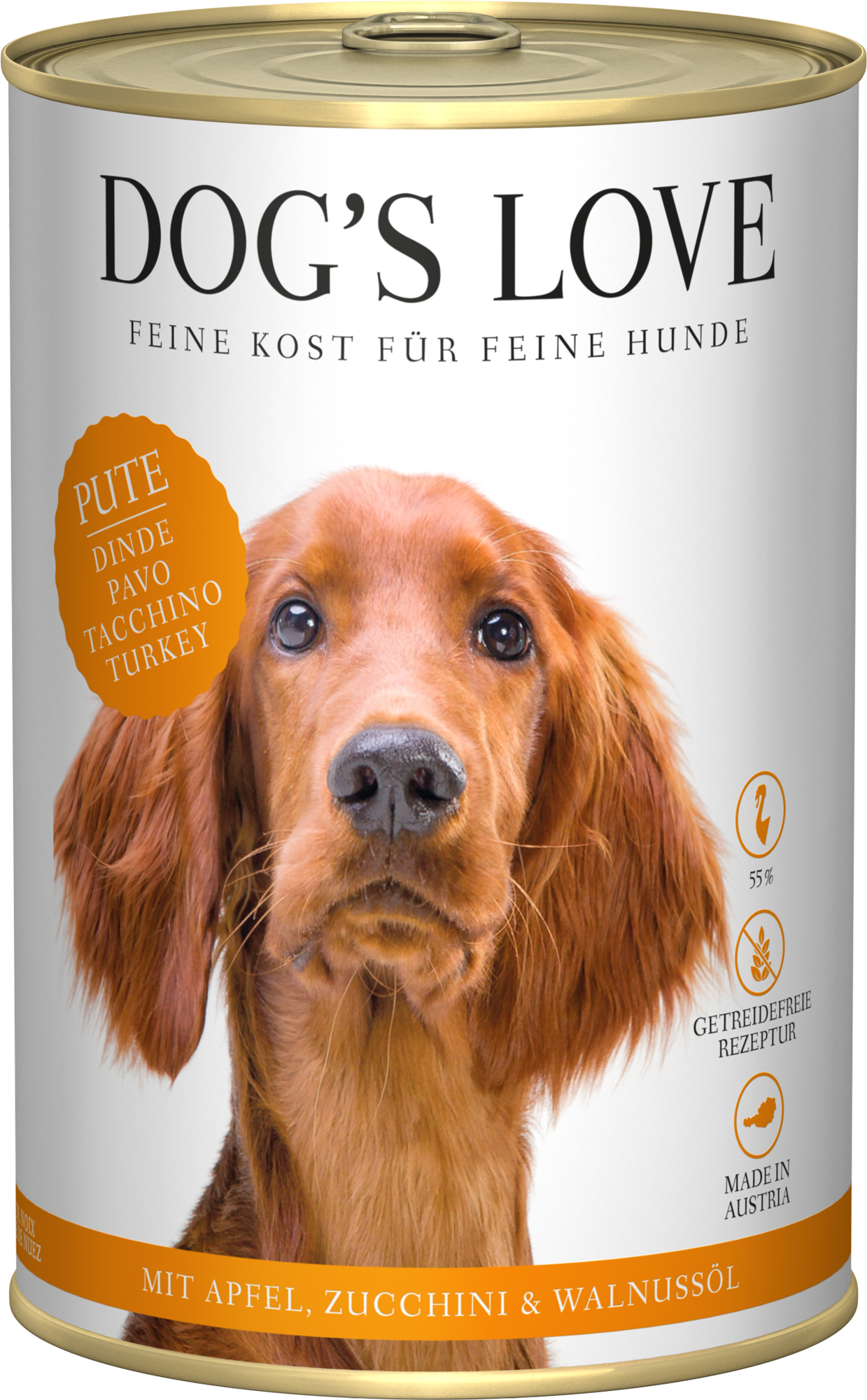 This delicious wet food for dogs contains turkey and is refined with apples, zucchini and walnut oil. It is optimally adapted to the nutritional needs of adult dogs and is also suitable for sensitive dogs.