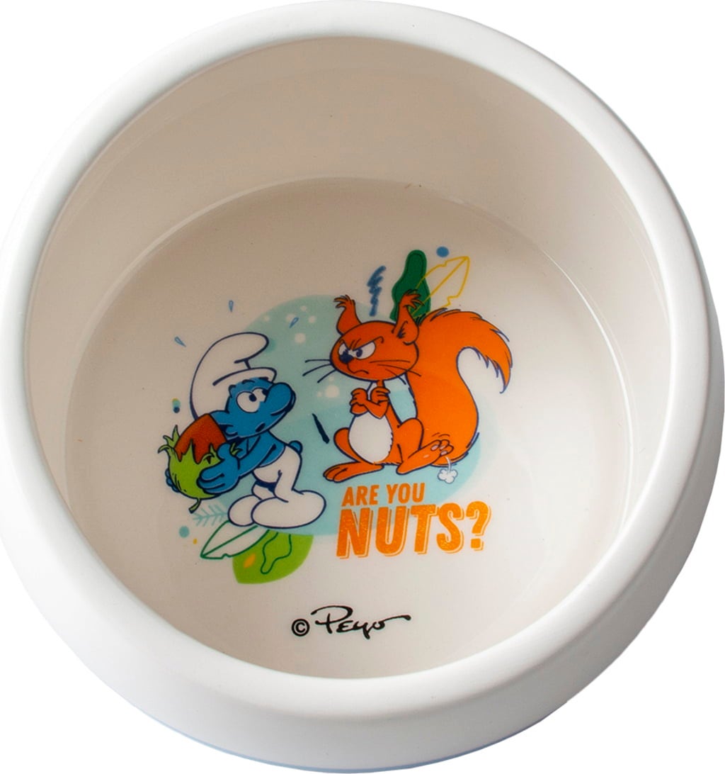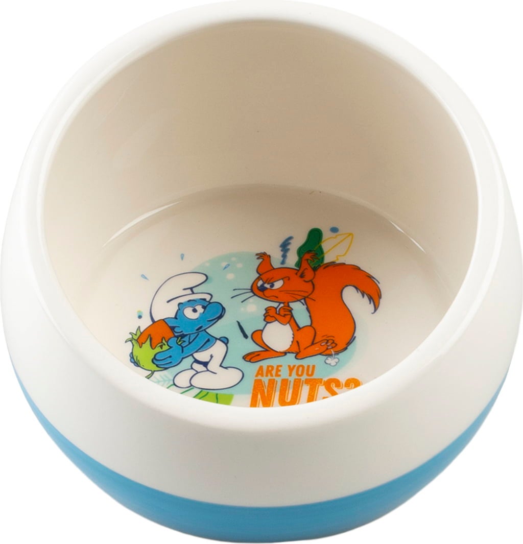 The Smurfs and Duvoplus have joined forces! They're proud to present a new, fun, and unique range inspired by the adventures and characters of the new Smurfs series. This ceramic feeding bowl featuring Clumsy and a squirrel is made from high-quality, fired stoneware, making it particularly sturdy and stable. The slanted design ensures easy access to food or water. Thanks to the premium enamel finish, the bowl is leak-proof when used as a water dish and is effortless to clean. The playful print adds the perfect finishing touch and promises a truly “Smurfy” mealtime for your rabbit or pet rodent.