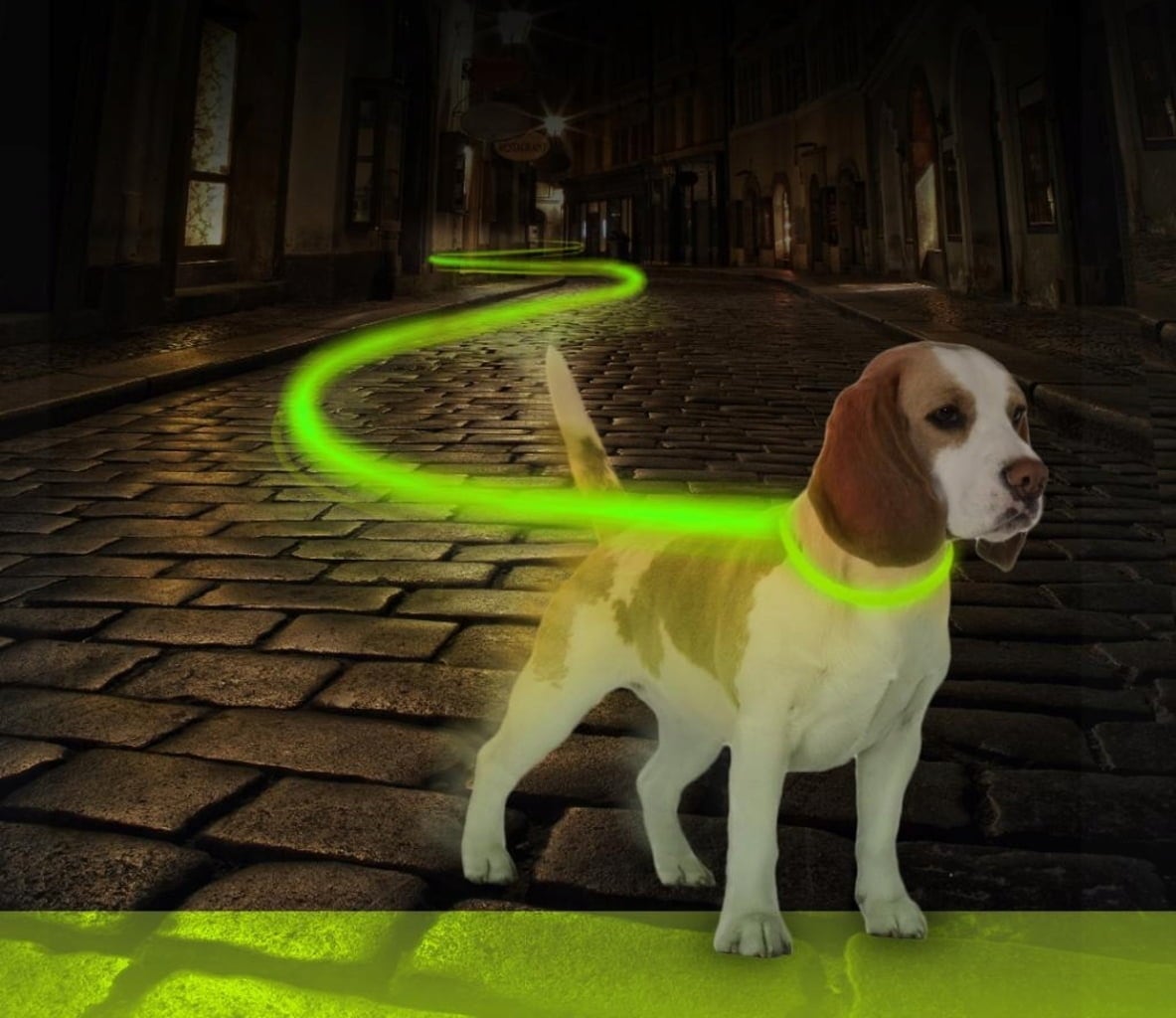 English reviews written for Duvoplus Flash Light Collar USB nylon green