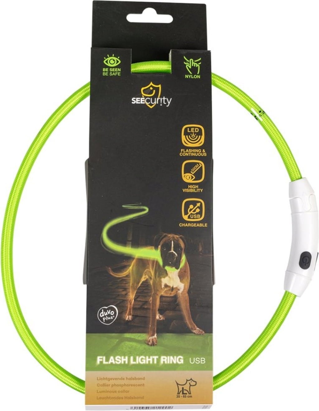 English reviews written for Duvoplus Flash Light Collar USB nylon green