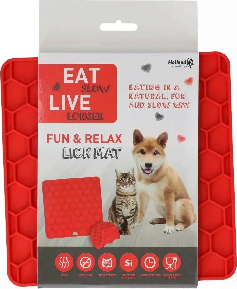 Eat Slow Live Longer Lick Mat Honeycomb, Red