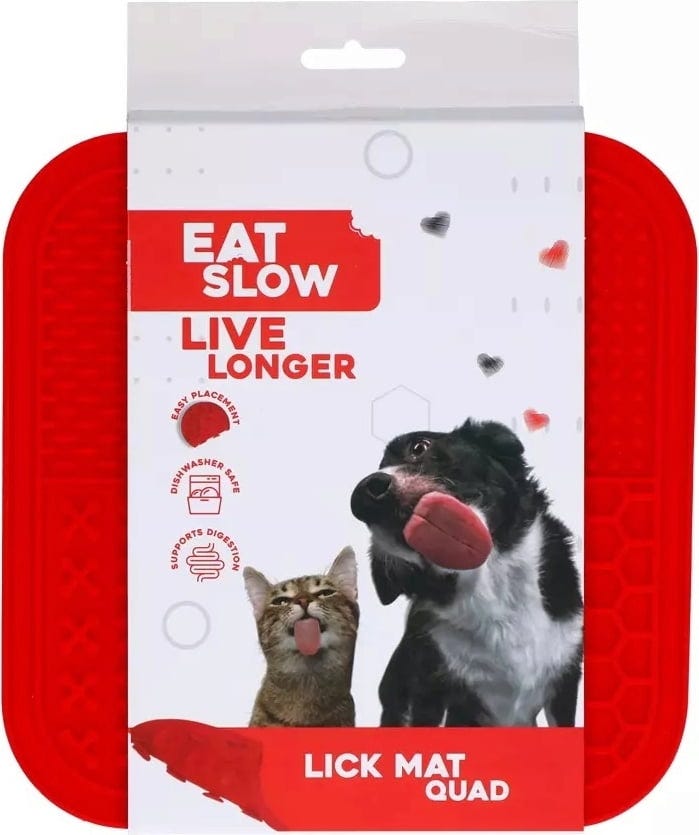 Eat Slow Live Longer Lick Mat Quad, Red