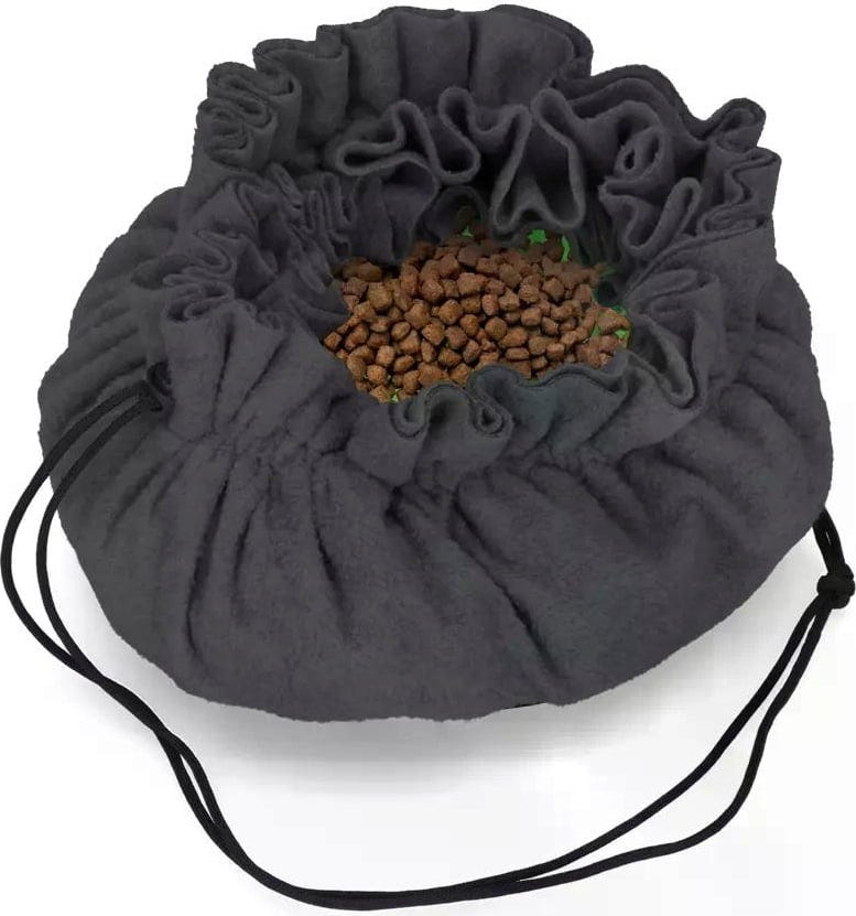 This fun snuffle mat is a great way to hide your pet's daily portion of dry food or favourite treats, which they then have to seek out using their keen sense of smell. Not only does this provide an enriching activity that your pet dog or cat will enjoy, it also helps to prevent them from gulping food down too quickly. A great extra feature is the drawstring with which the mat can be adjusted in size or even transformed into a practical basket.