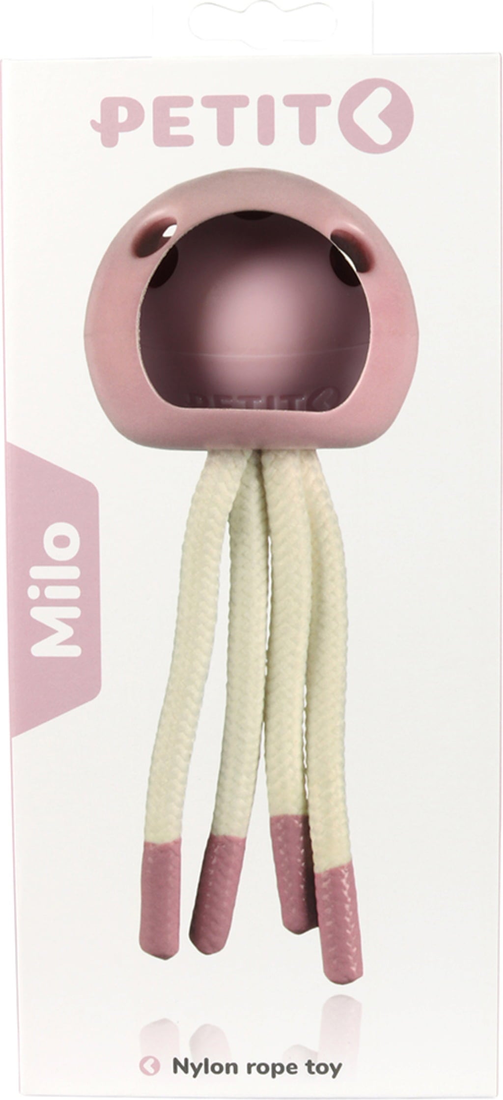 The "Milo" toy by PETIT is ideal as a chew toy for puppies and small dogs. The rotating tentacles are made of robust nylon, providing a calming effect while also helping to keep teeth clean. Equipped with rubber ends, the tentacles are suitable for chewing, and Milo's round, elastic rubber head makes playing and gripping easier. Thanks to the toy's soft pastel colour, dogs can easily perceive and play with it.