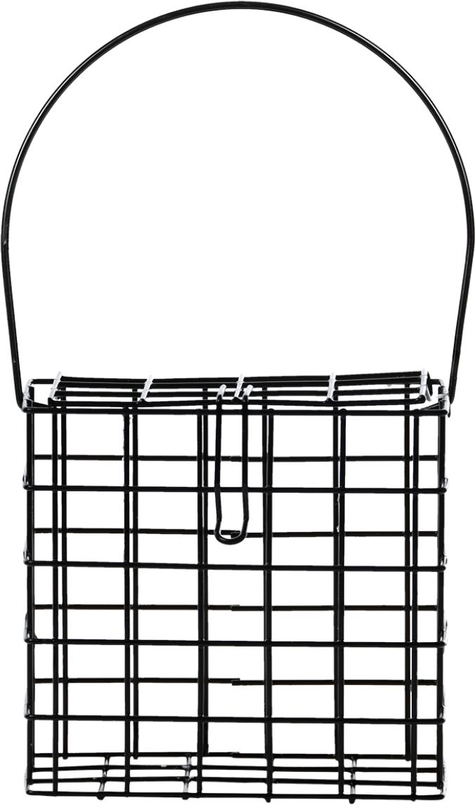This wire mesh feeder can be filled with blocks of suet that keep your garden birds well-fed during the winter.