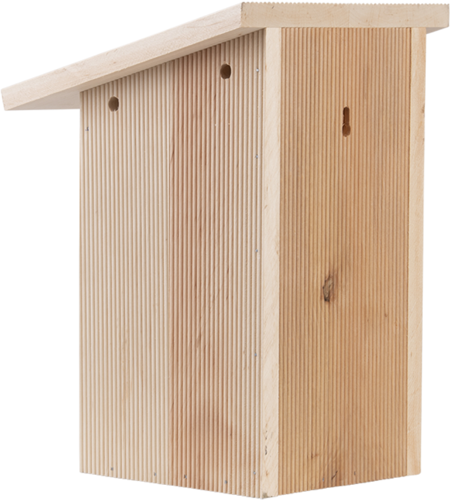 This delightful nesting box was specially designed for Parus major. However, the little billy biter, tree sparrow, and pied flycatcher will also be pleased to find their new home here. They can use the box for nesting and as a habitat. Because the inside is roughened and there are grooves at the front, the young birds can easily climb out of the nest. The thick walls provide perfect insulation, and the construction ensures that flooding is prevented. In short: an ideal feel-good place for useful insects.