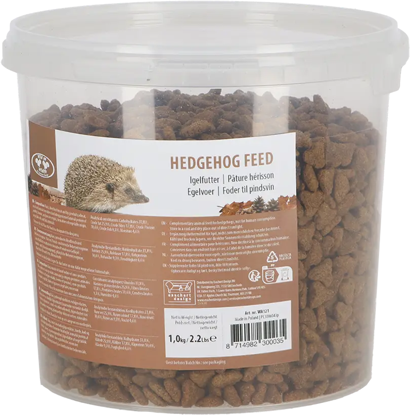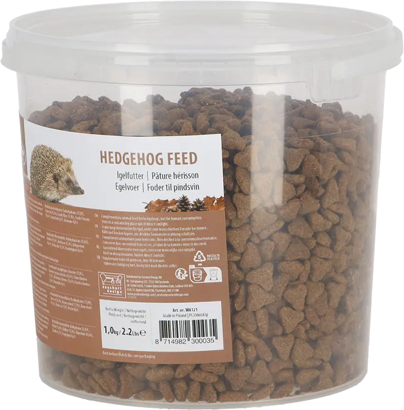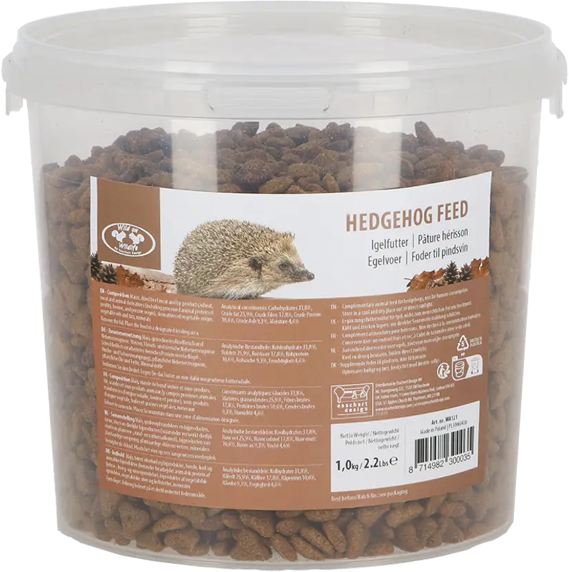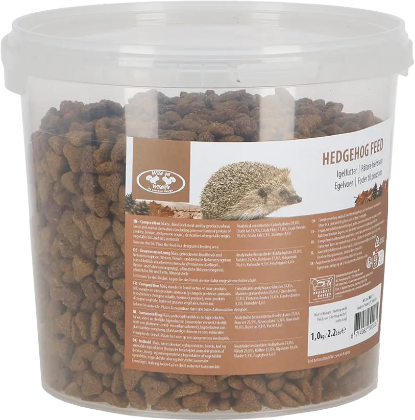 This high-quality hedgehog food is a balanced mix of select ingredients such as corn, beef, wheat, oils, and fats. So you can support hedgehogs in your garden all year round and offer them a high-quality food source specially developed for them.
