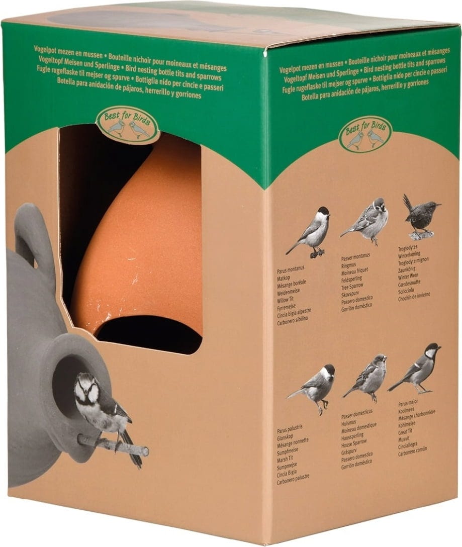 English reviews written for Esschert Design Beautiful vase shaped bird house for birds such as sparrows